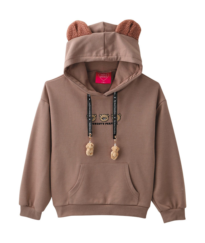 ・くまみみ付きフードがかわいいプルパーカーです。スピンドルにはくまのチャーム付き!