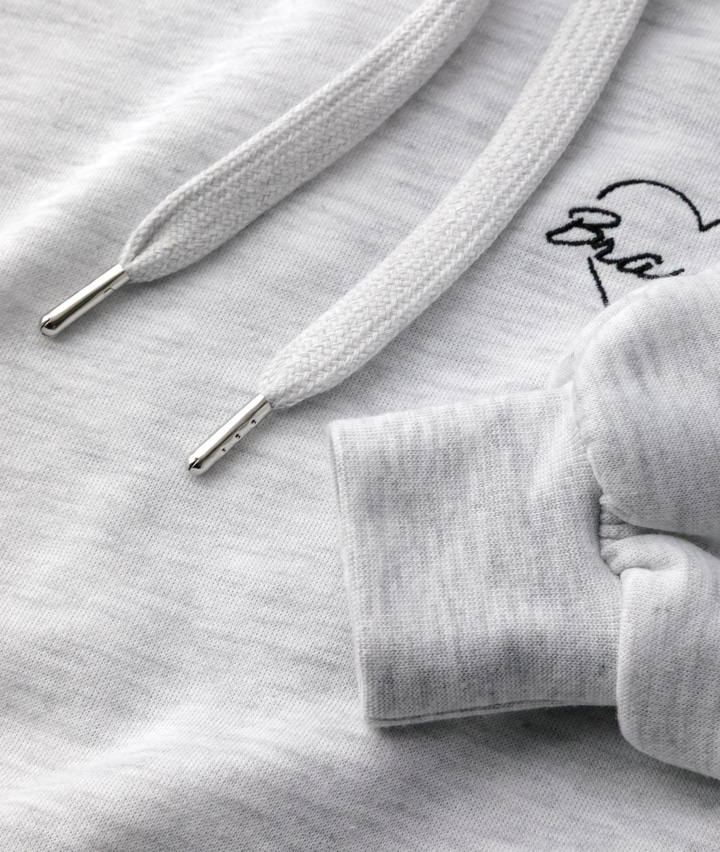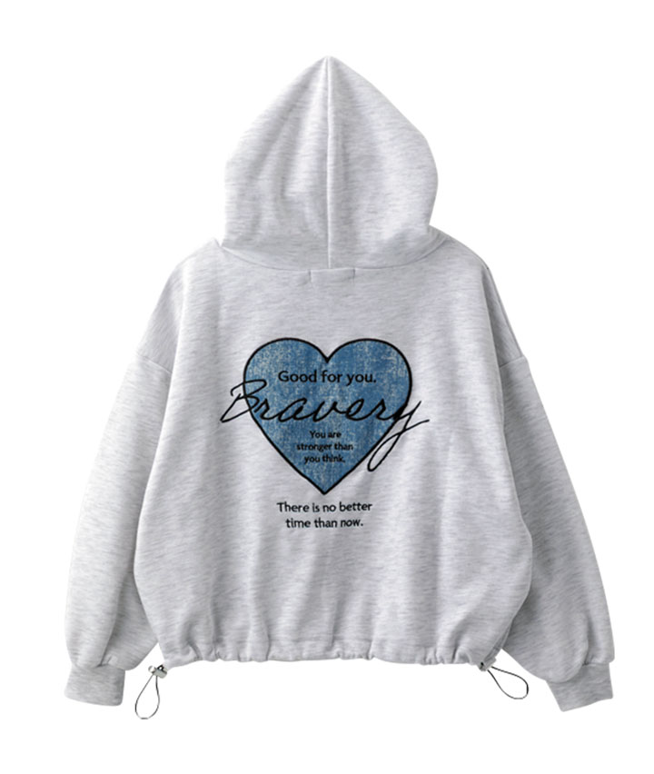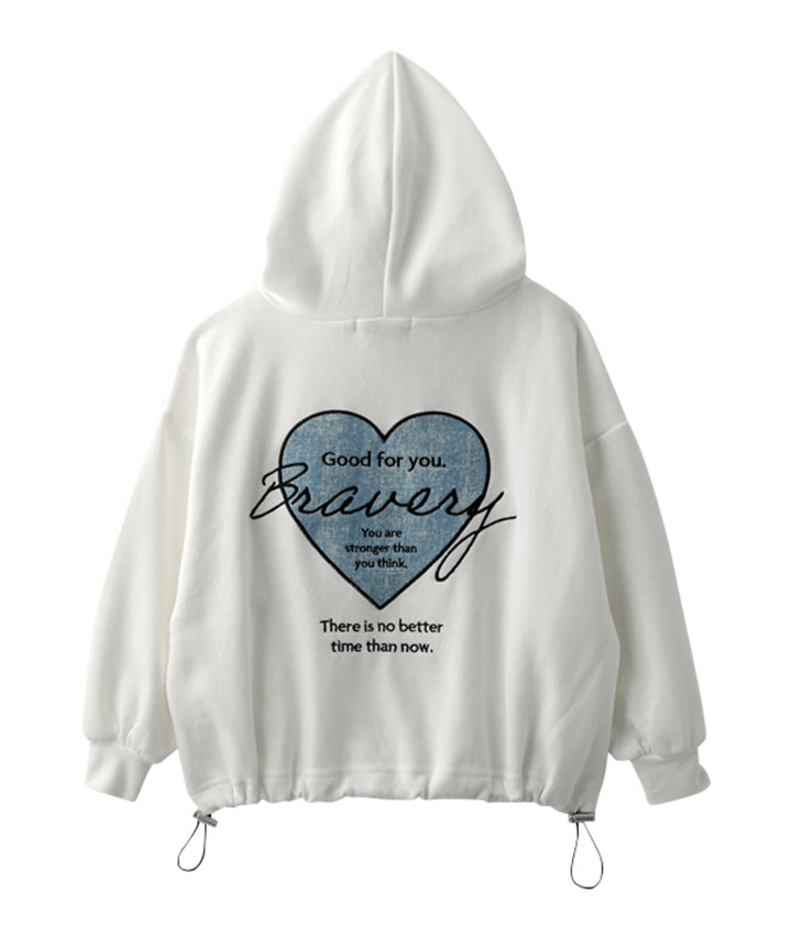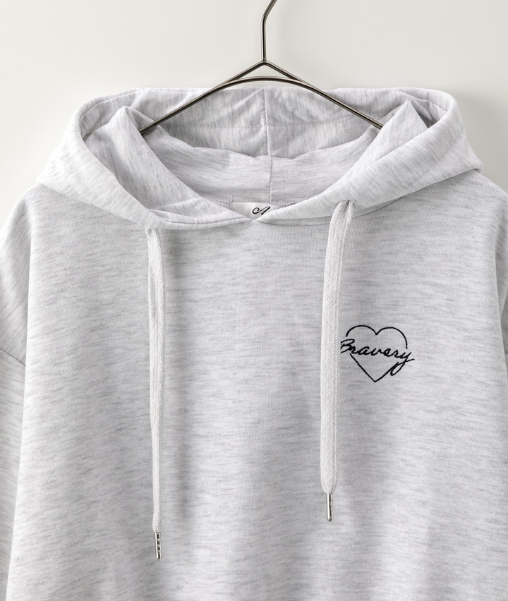 ・後身のハート型に叩きつけられたデニム生地がポイントのプルパーカーです。裾のドローコードを絞ってシルエットを変えて楽しめます。