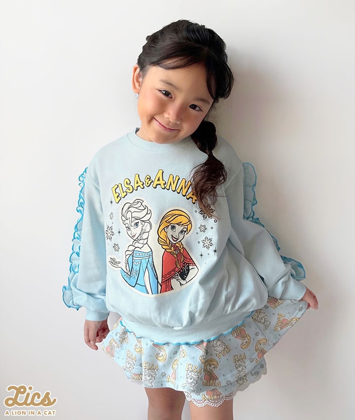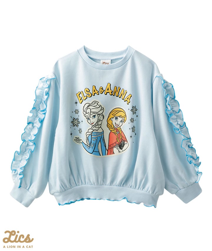 ・ママインフルエンサープロデュースブランド【LICS】から新アイテム登場!!袖のフリル使いがカジュアルでかわいい、エルサのデザインのトレーナーです。