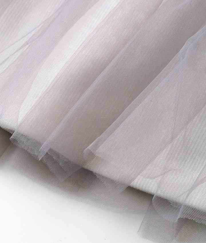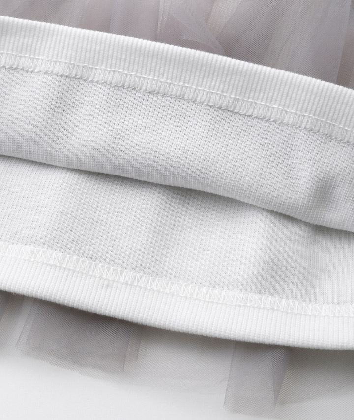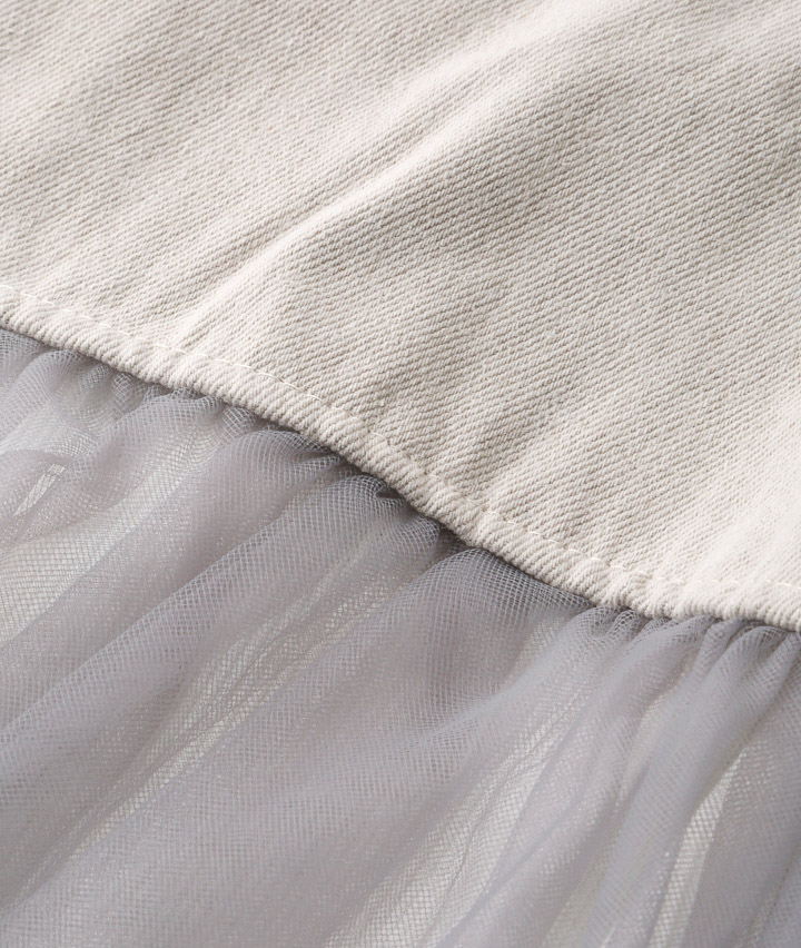 ・【グレー】アウター本体:綿70%、レーヨン15%、ポリエステル15% チュール部分:ナイロン100% インナー:ポリエステル95%、ポリウレタン5% 【サックス】アウター本体:綿100% チュール部分:ナイロン100% インナー:ポリエステル95%、ポリウレタン5%