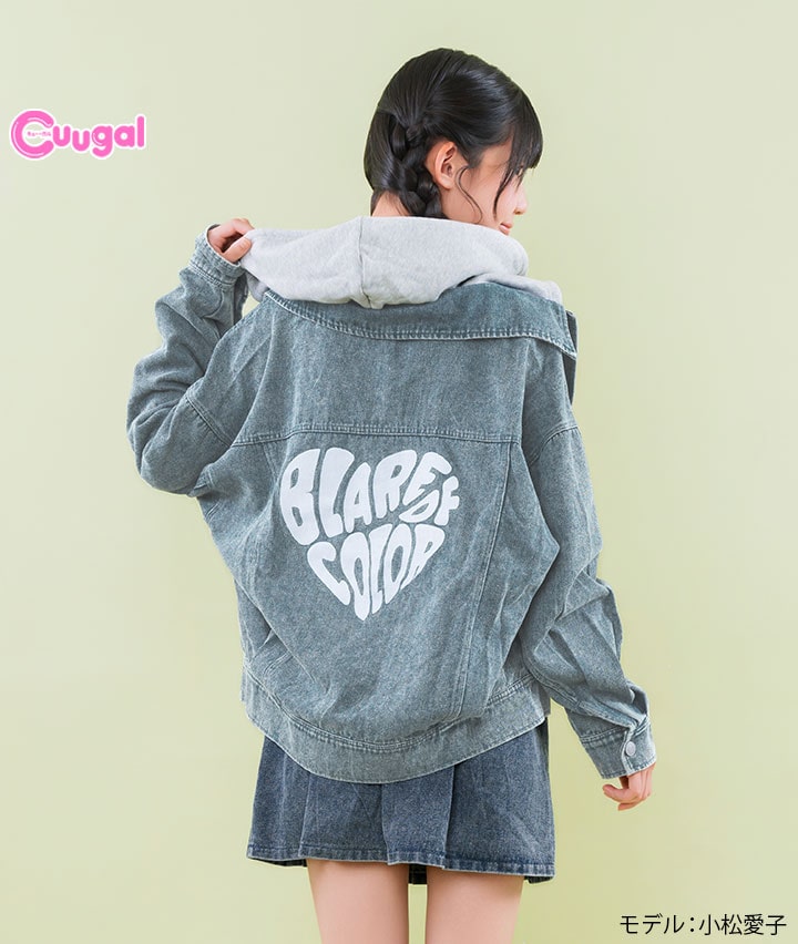 ・パーカーをレイヤードしている風のフード付きデニムジャケットです。フード部分は脱着可能なので、インナーに合わせて楽しめます。