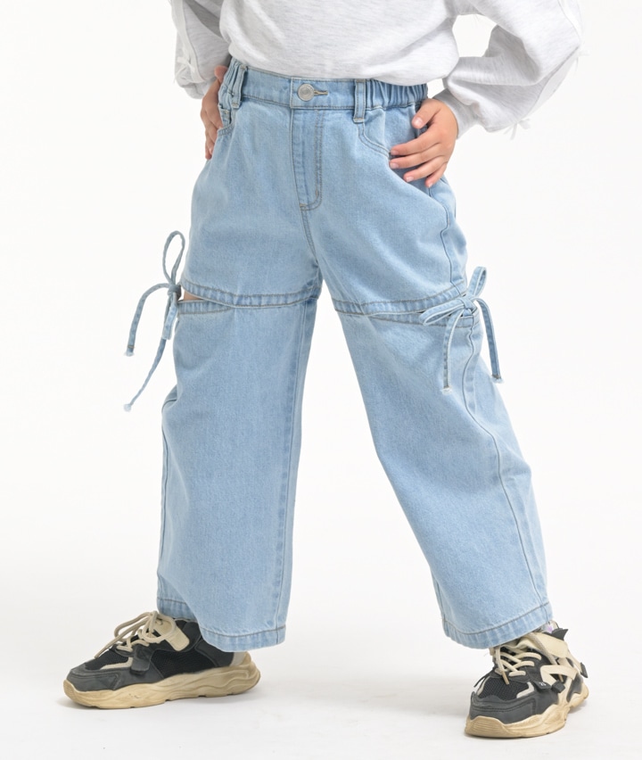 ・サイドのリボンデザインがかわいいワイドパンツです。