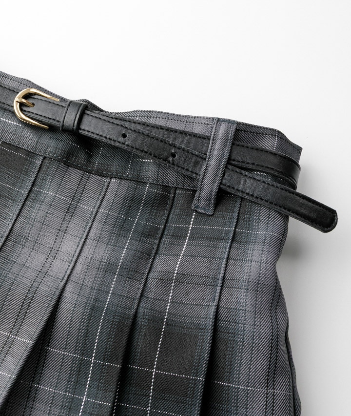 ・どんなコーデにも合わせやすいプリーツスカパンです。インナーパンツ付きで動いても安心。ベルト付きでコーディネートしやすい。