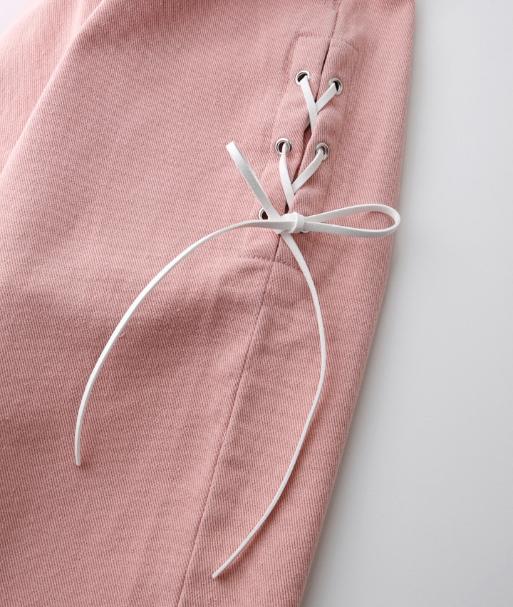 ・【サックス】本体:綿100% レースアップ部分:合皮皮革 【ピンク】本体:綿65%、レーヨン25%、ポリエステル10% レースアップ部分:合皮皮革
