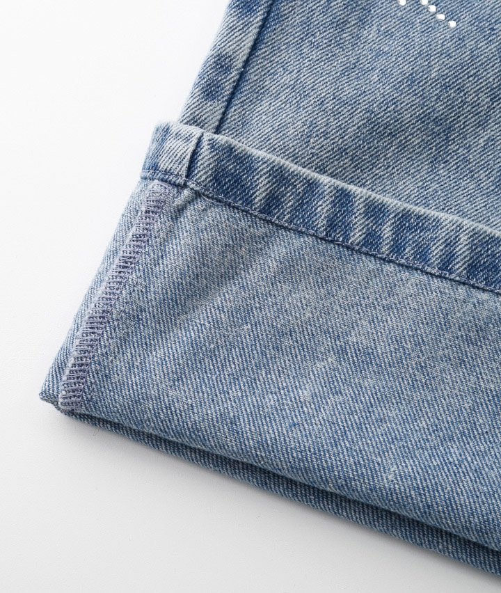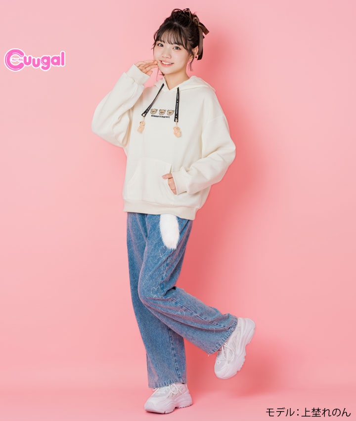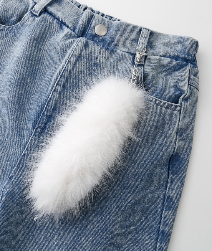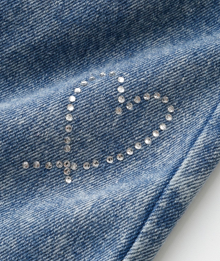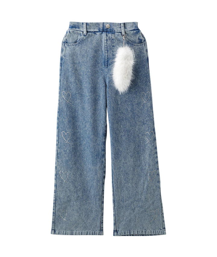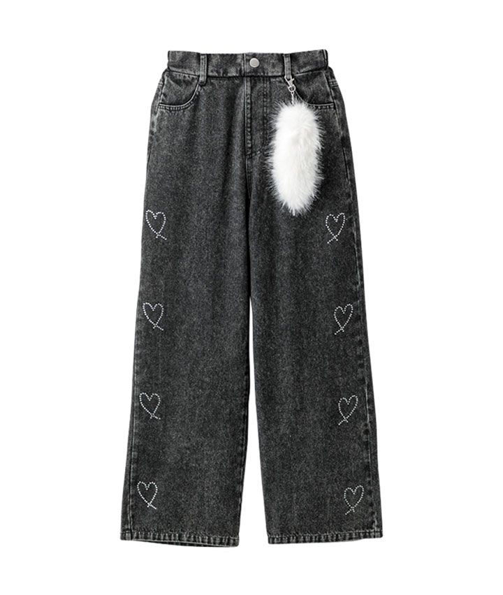 ・ケミカル加工がかっこいいデニムにハートのラインストーンがかわいいロングパンツです。しっぽのチャーム付き!