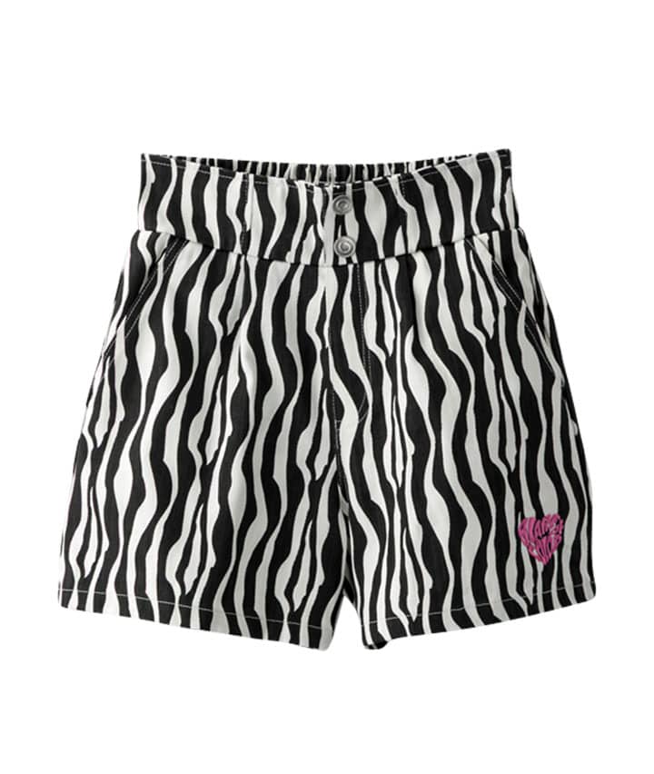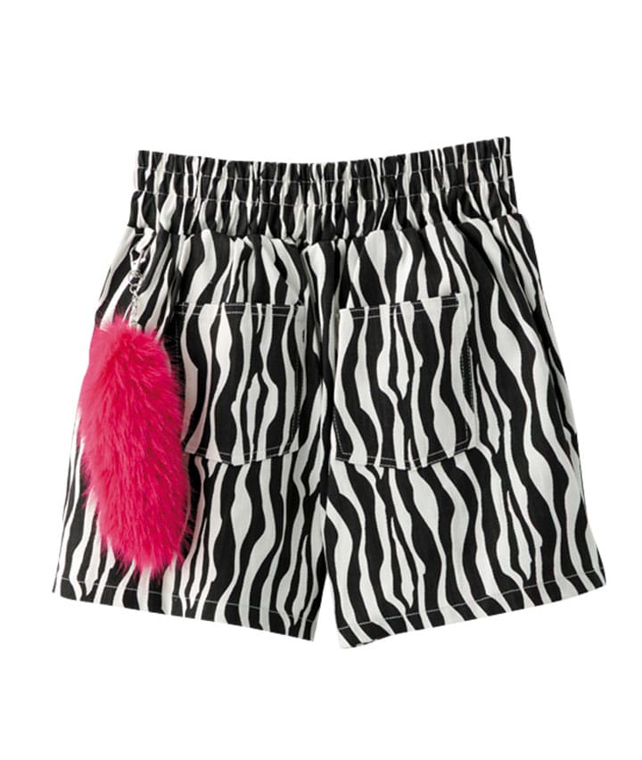 ・ゼブラ柄が目を引くショートパンツです。しっぽチャーム付き!