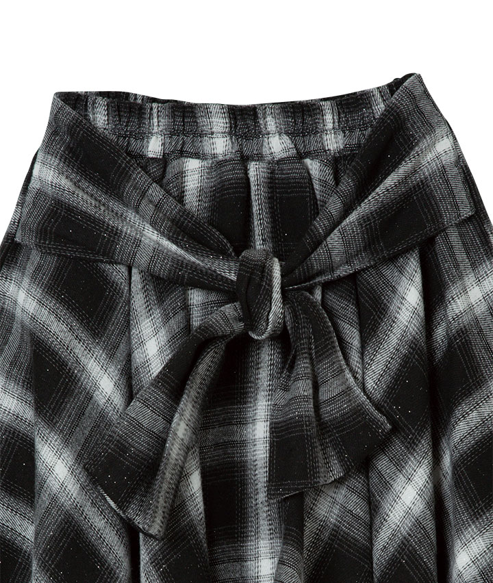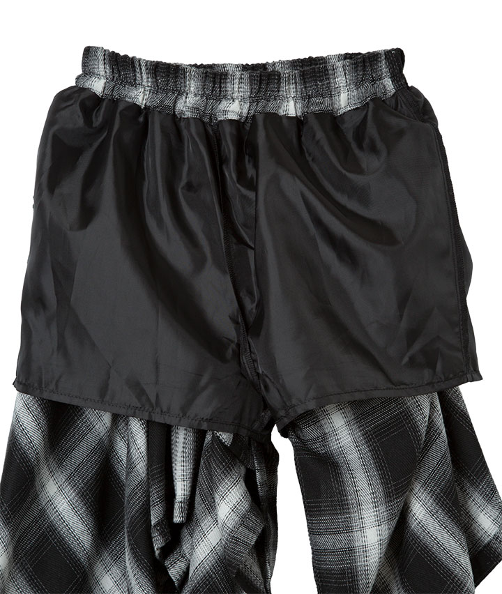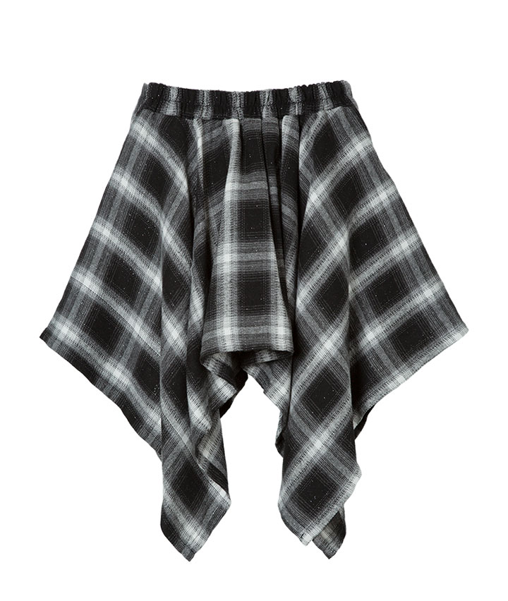 ・チェックシャツを巻いた風のデザインのスカートです。裏地はパンツ仕様でアクティブに動いても安心です。