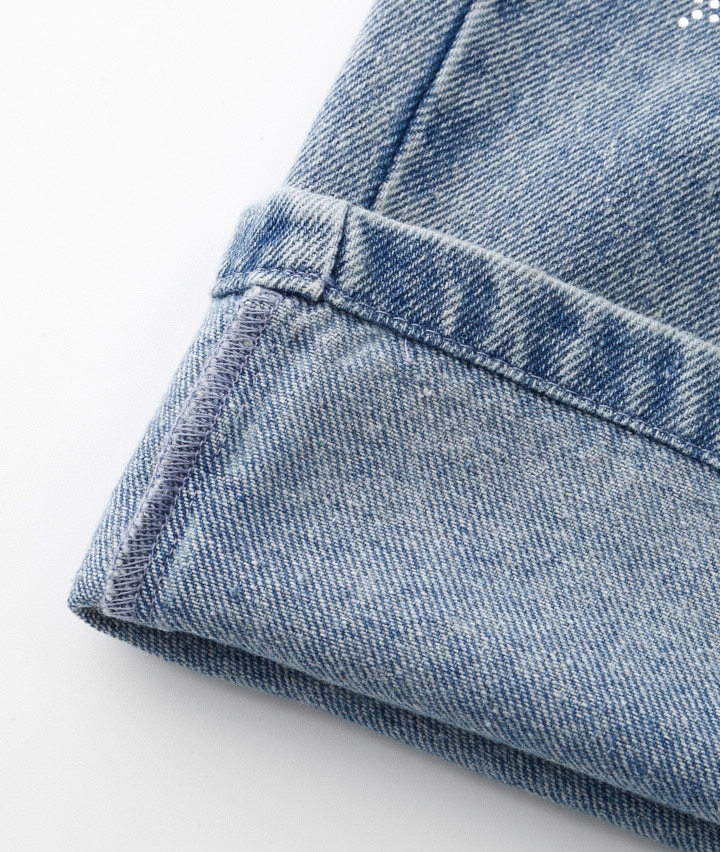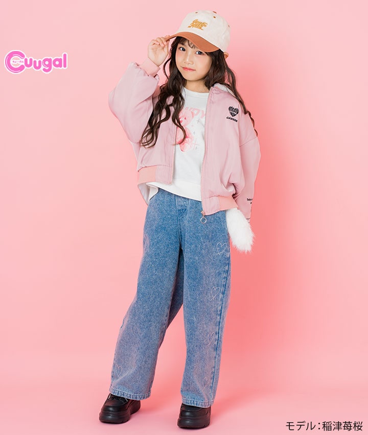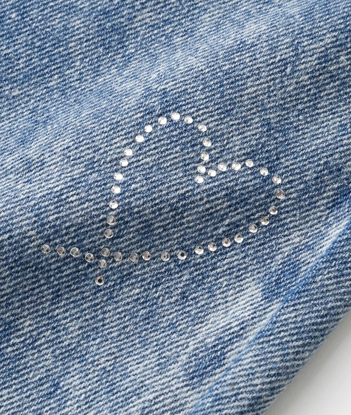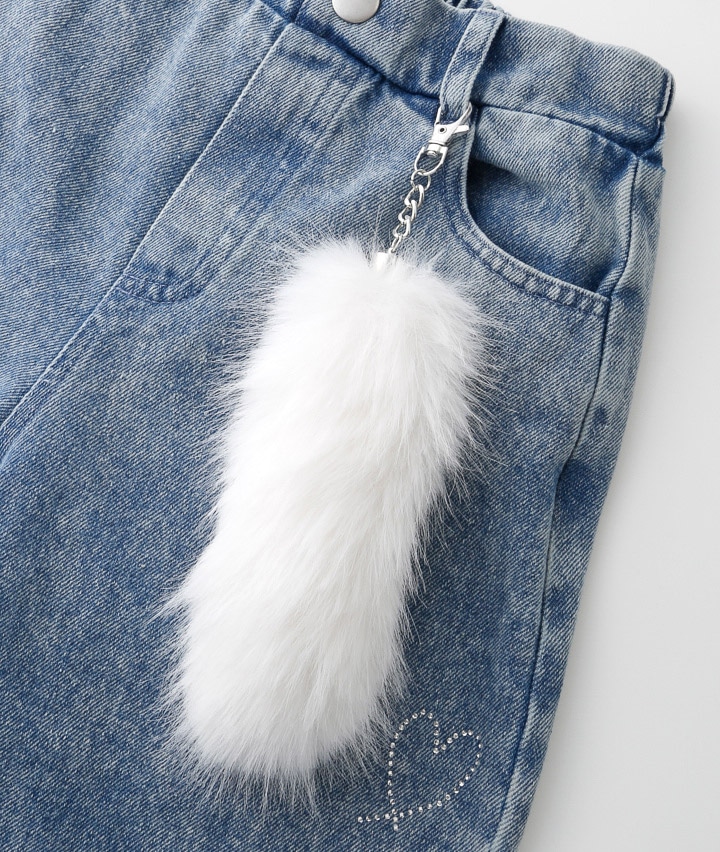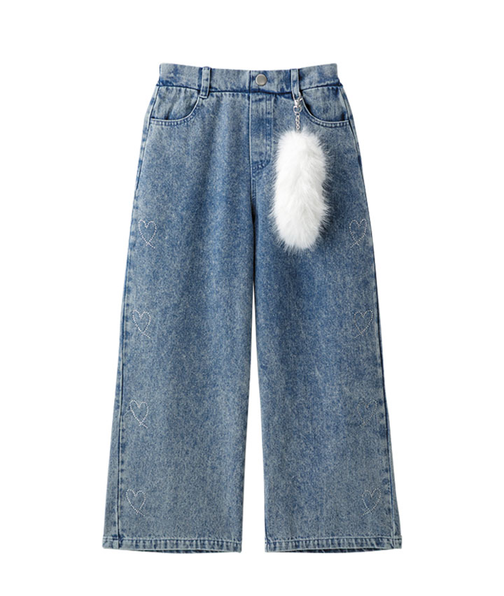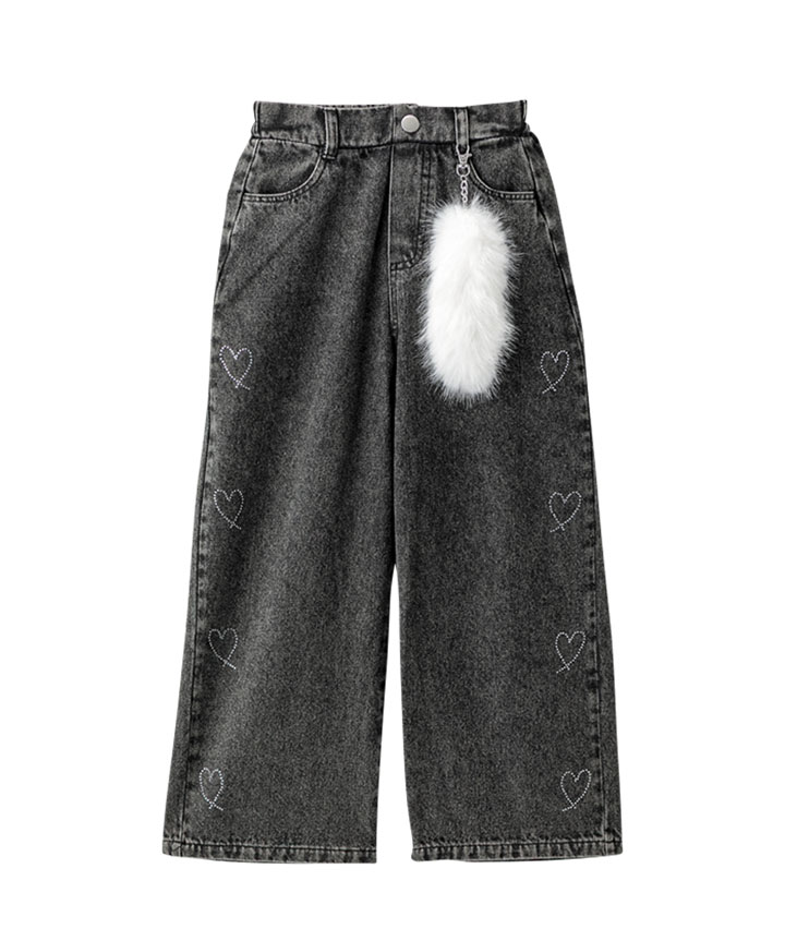 ・ケミカル加工がかっこいいデニムにハートのラインストーンがかわいいロングパンツです。しっぽのチャーム付き!