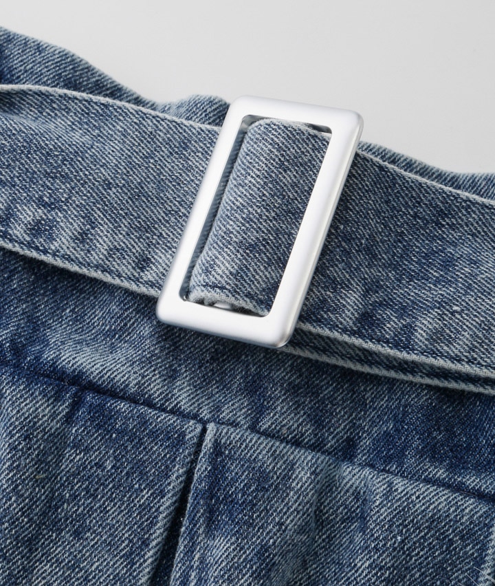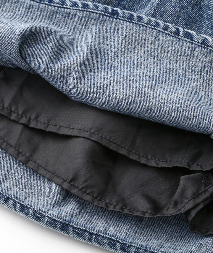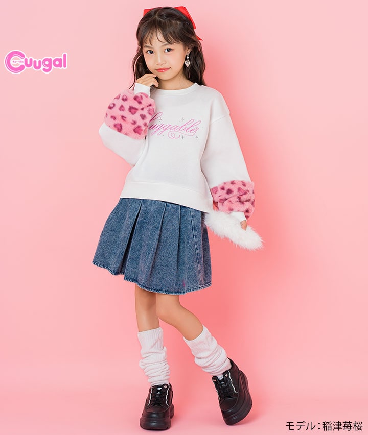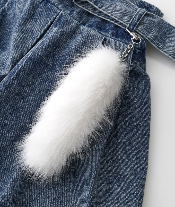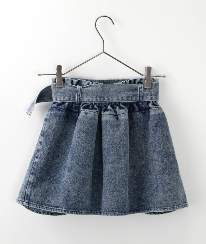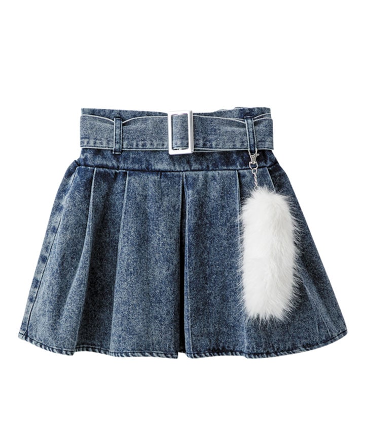 ・ケミカル加工がかっこいいデニムのプリーツスカートです。共地のベルトとファーのチャーム付き!裏地はパンツ仕様になっていてアクティブに動いても安心です。