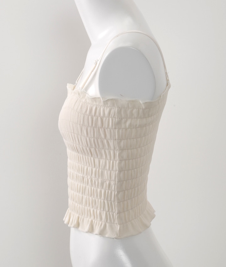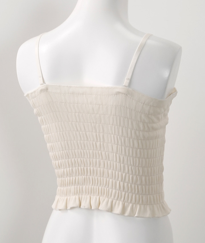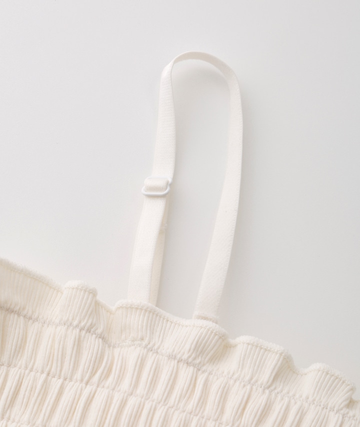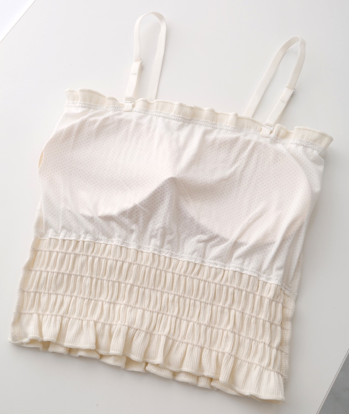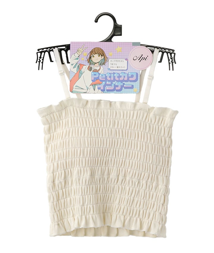 ・1枚でもかわいく着れちゃう!ガールズにオススメ、【Api】のカジュアルインナー!裏メッシュカップ付、ストラップ取り外し可能、シャーリング調でカジュアルな着用感。