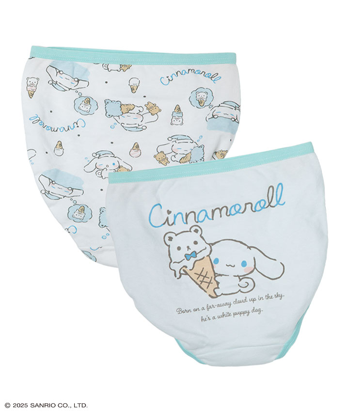 ・人気のキャラクター「シナモロール」をプリントした2枚組ショーツです。※総柄の商品は、生地の裁断箇所によって商品一点ごとにパターン(柄)が異なっているものがございます。そういった商品の場合、お届けした商品が掲載画像とはパターンの位置や内容が異なるものがあります。予めご了承の上、ご購入をお願い致します。