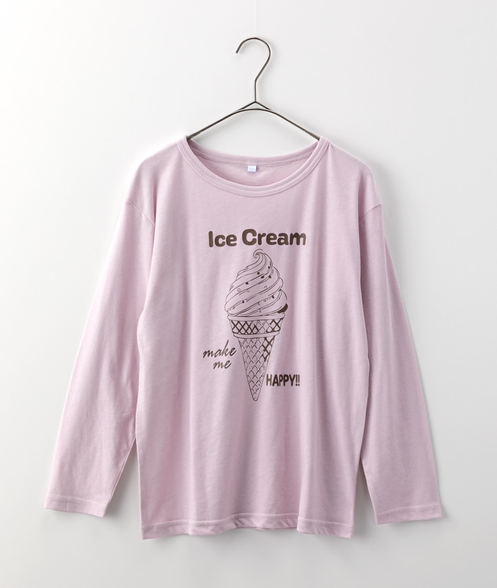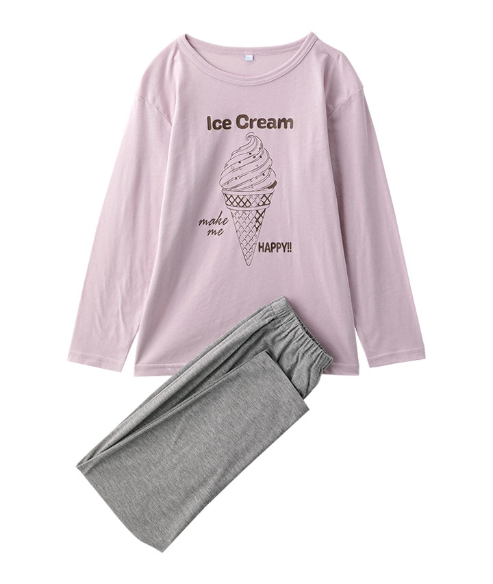 ・天竺素材の着やすいパジャマです。女の子が大好きなアイスクリームロゴがポイントです。