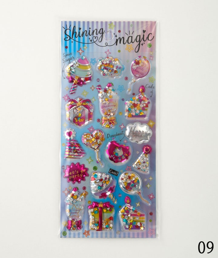 ・人気沸騰中のぷにぷに素材のキラキラステッカーです。一部のシールは中身がシャカシャカ動くのが特徴的です。