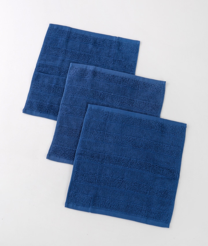 ・34×35㎝のホテルタイプおしぼりタオル。しっかり手触りが特徴です。同色3枚組のお得セットです。