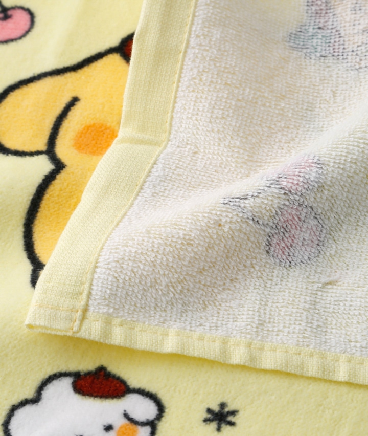 ・ポムポムプリンのくらしを描いたフェイスタオルです。同柄2枚組です。