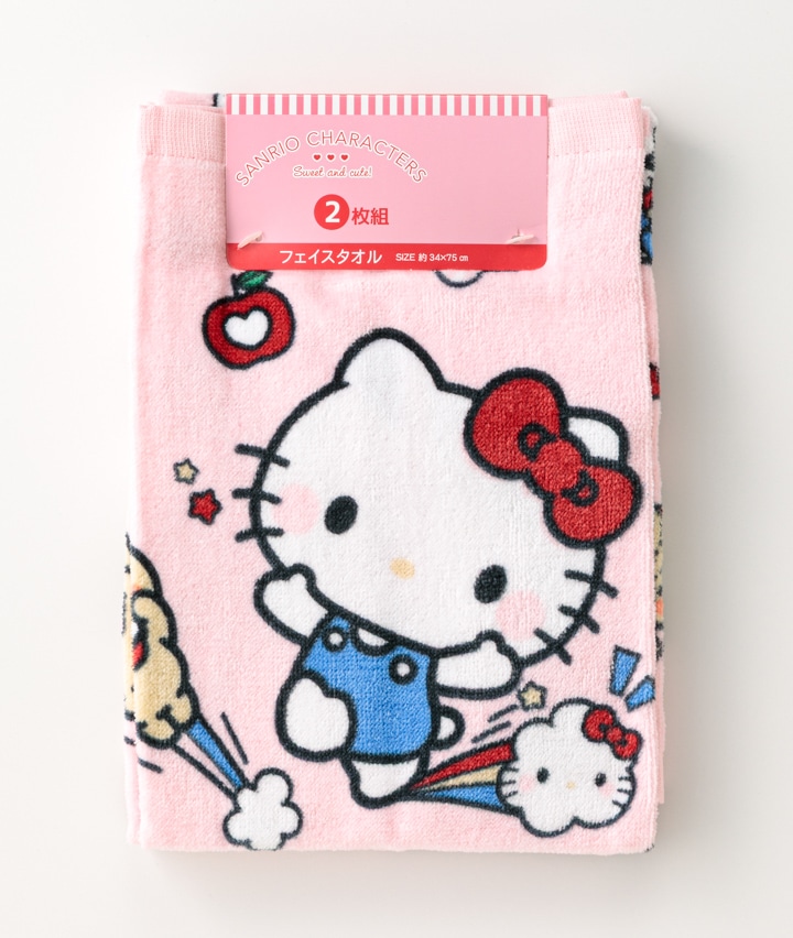 【サンリオキャラクターズ】(ハローキティ)(2枚組)フェイスタオル