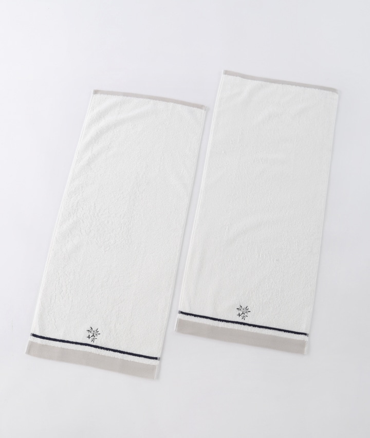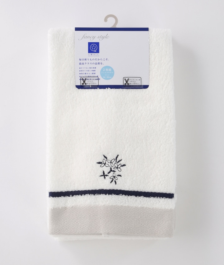 ・フェミニンなムードを表現したフェイスタオル。刺繍がワンポイント。同柄2枚組です。