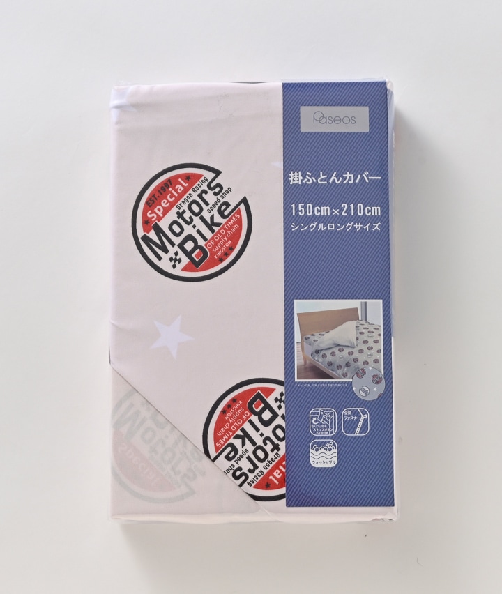 ・アメカジ風ワッペン柄の掛カバー。六箇所スナップボタン付きで、着脱らくらく。