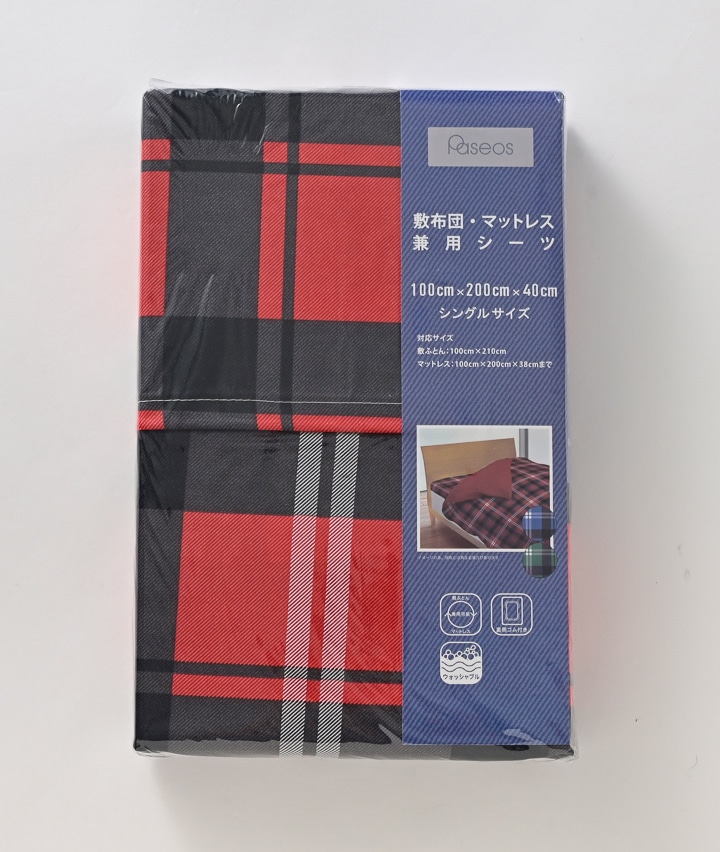 ・アメカジ風チェック柄の敷布団・マットレス兼用シーツ。裏側にゴム付きで、着脱らくらく。厚さ38cm程度のマットレスまで対応。