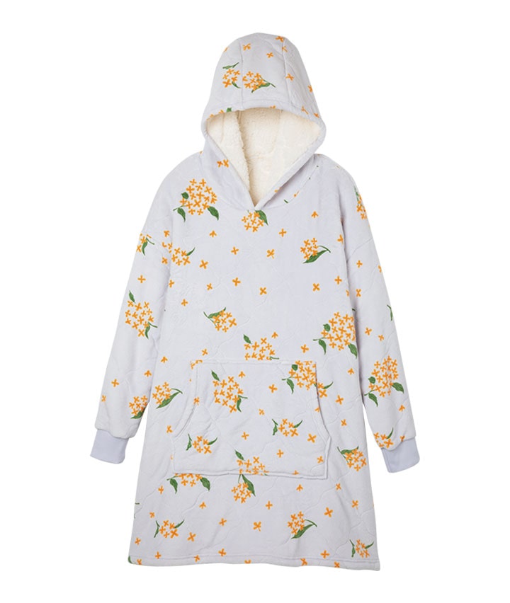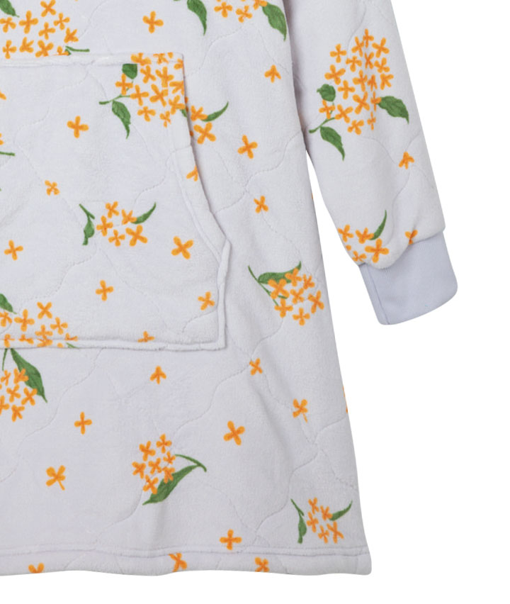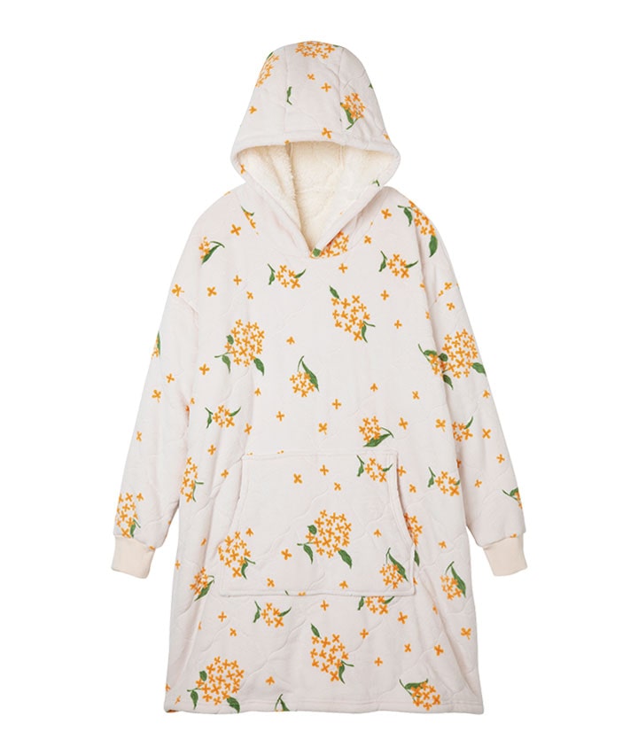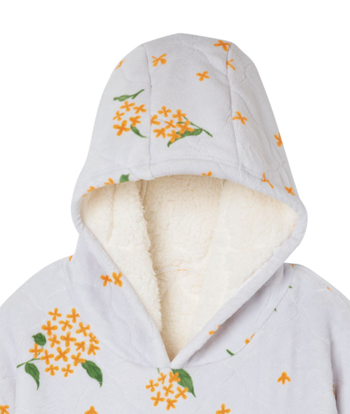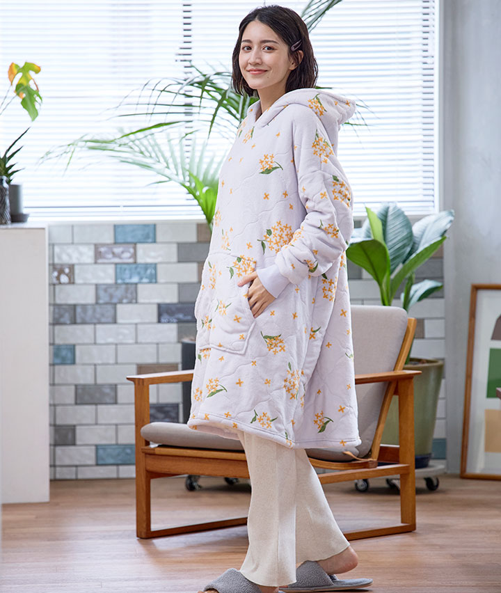 ・生活の木のカレンデュラオイルで保湿加工を施した着る毛布。肌にしっとりうるおいを与えながら、ふんわりあったか生地が冷えやすい季節もやさしく包みます。金木犀の可憐な柄が部屋時間を華やかに彩り、毎日のくつろぎを心地よく。洗濯機で丸洗いでき、清潔さも長続きします。