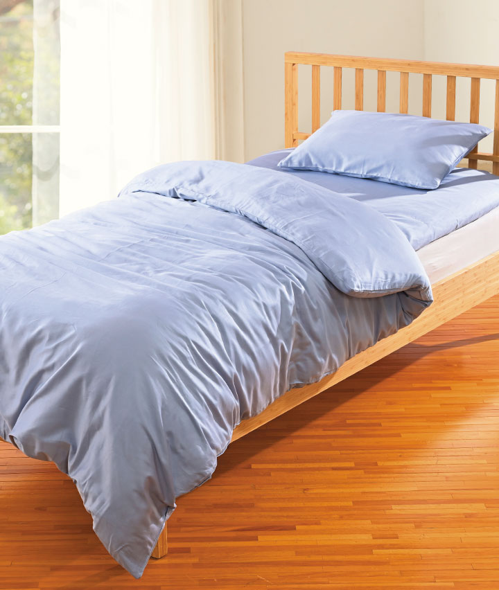 ・綿100%のサテン織生地を使用。上品な光沢と滑らかな肌触りが特徴です。