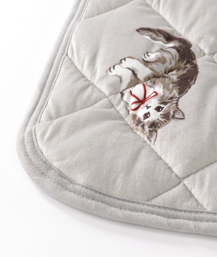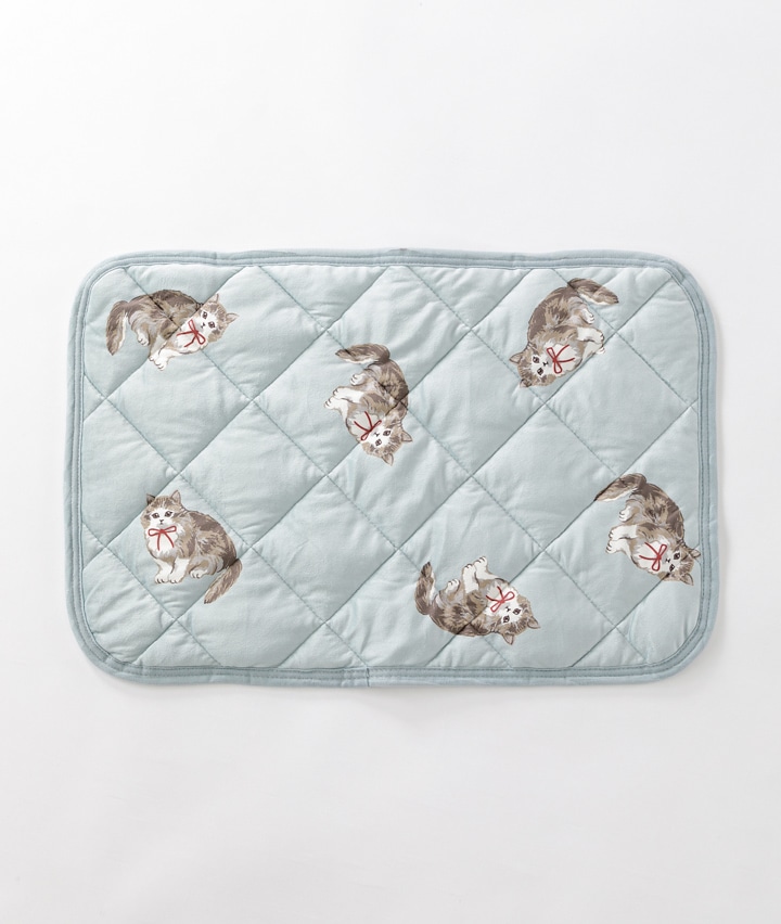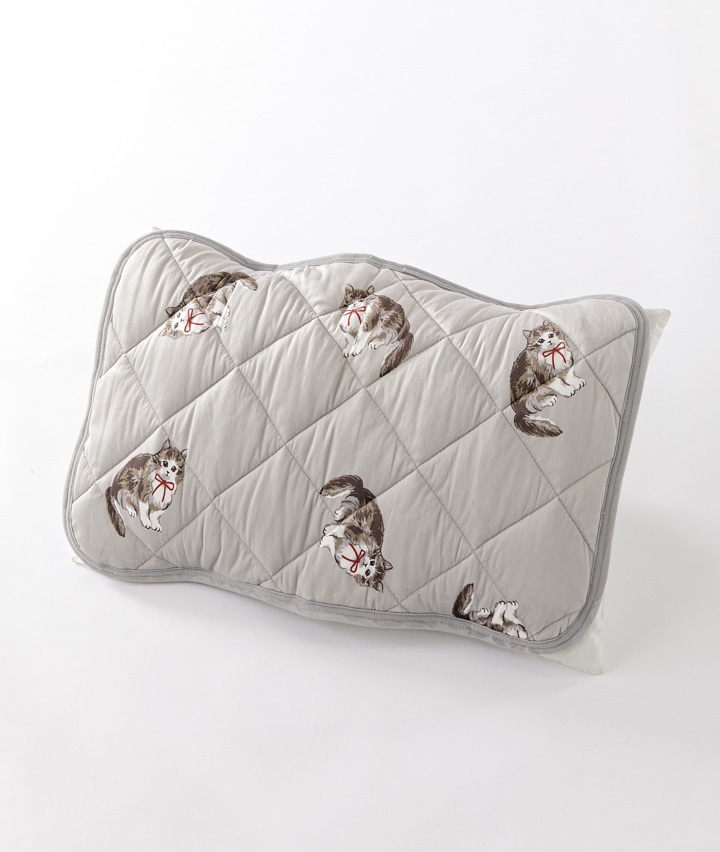 ・猫柄のかわいいデザイン、ふんわり素材の枕パッド。快適な寝心地です。