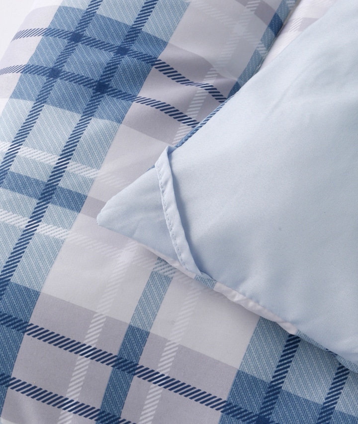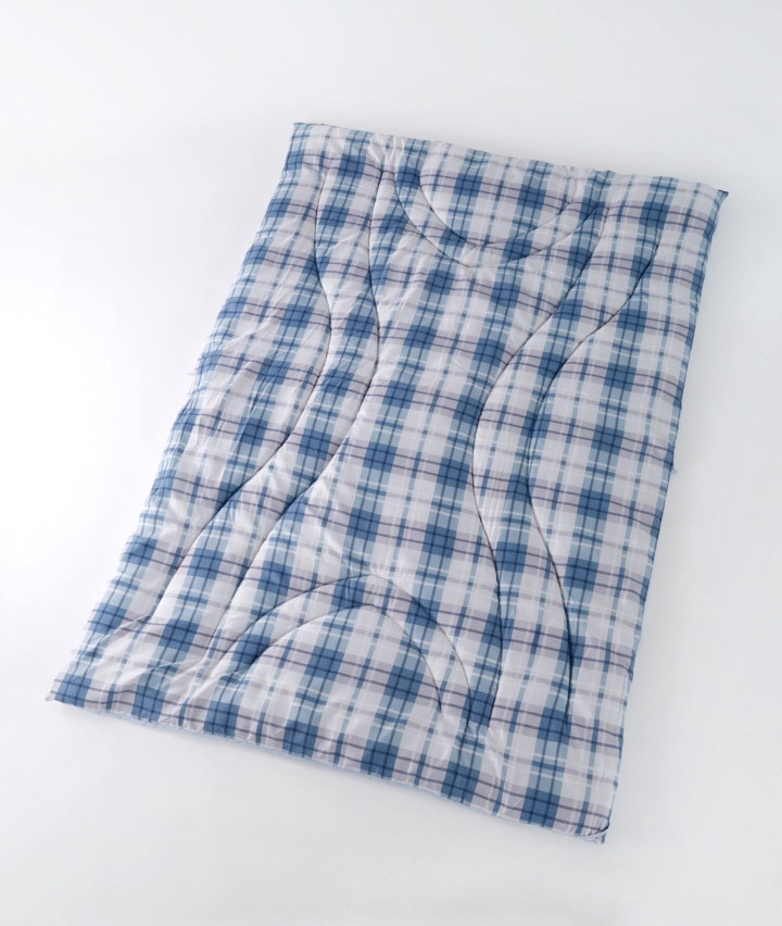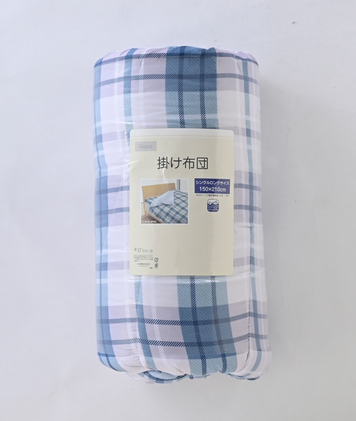 ・チェック柄の掛布団。明るいカラーリングが、お部屋を演出します。