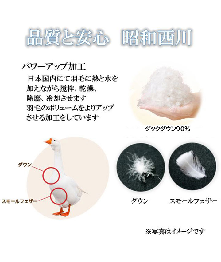 ・昭和西川の羽毛掛け布団。ダックダウン90%使用で安心の日本製です。