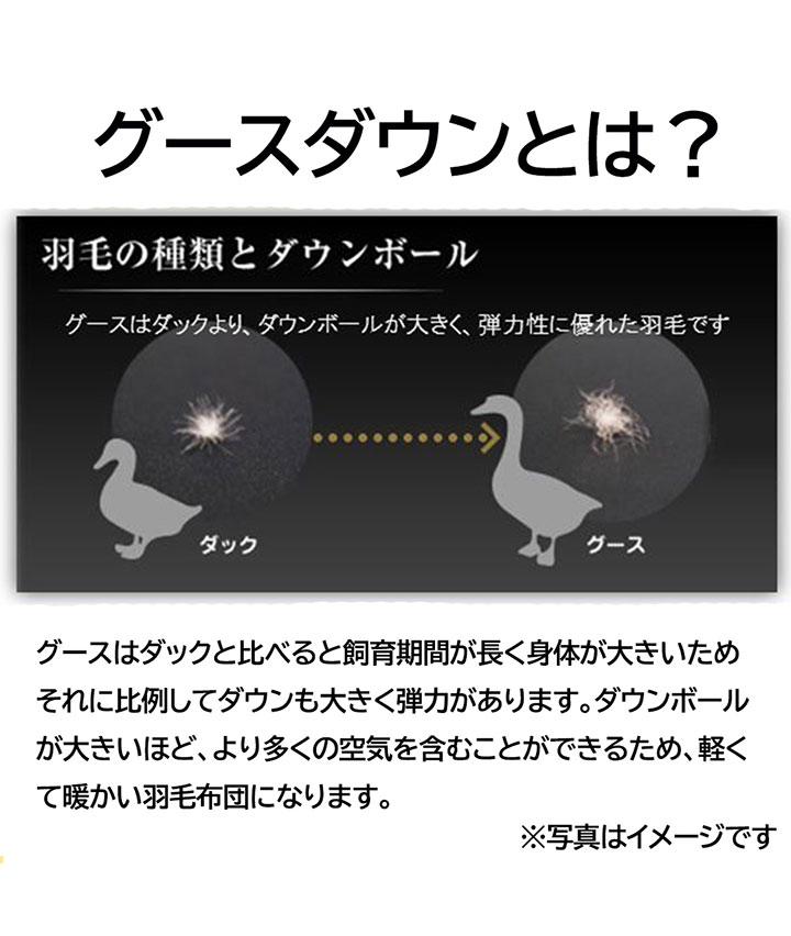 詰め物:グースダウン90%、フェザー10%(充填量:1.1㎏)