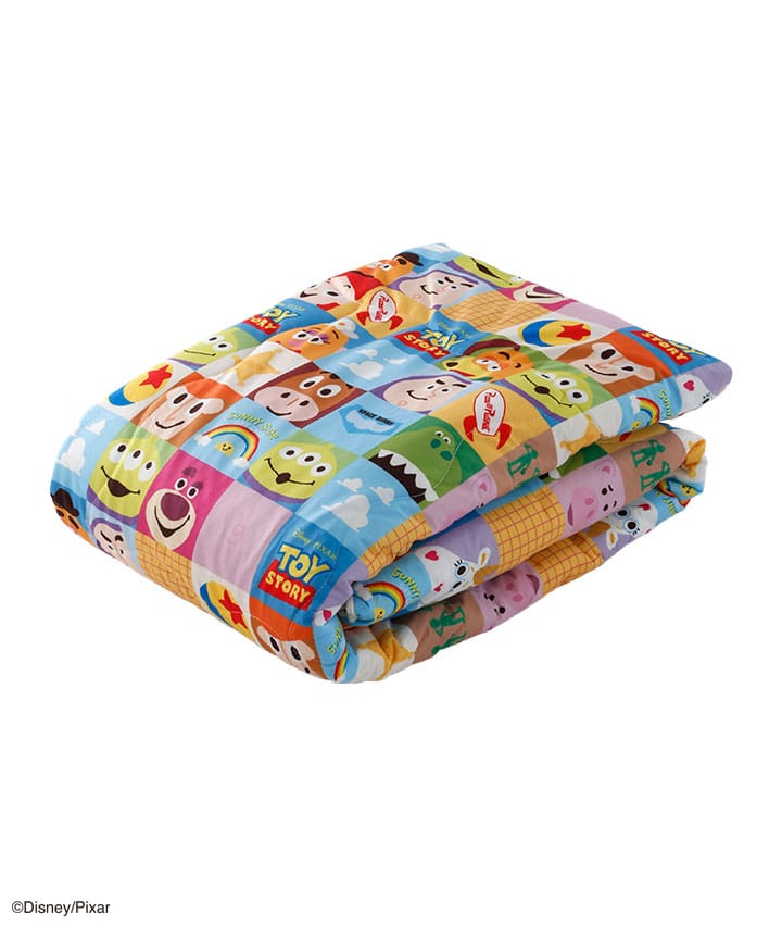 ・『トイストーリー』キャラクター達のブロック風デザインのあったか掛布団です。
