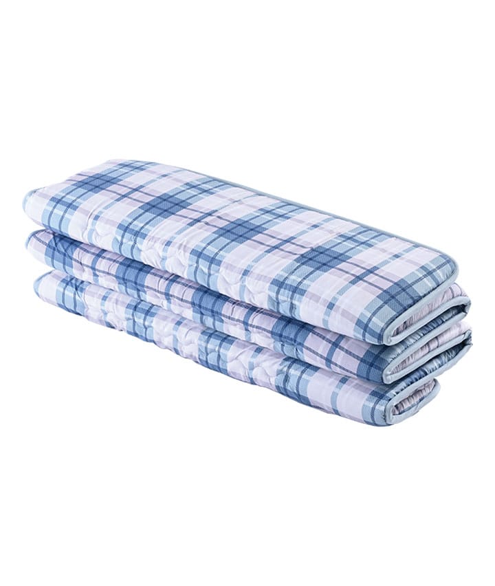 ・チェック柄の6折敷布団。明るいカラーリングが、お部屋を演出します。