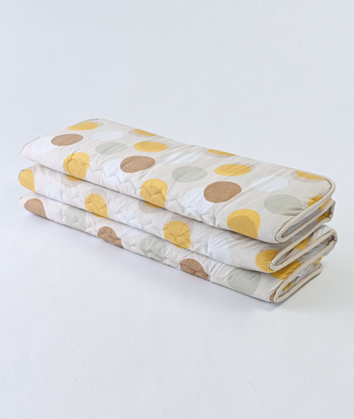 ・ドット柄の6折敷布団。ポップなカラーリングと柄が、お部屋を演出します。