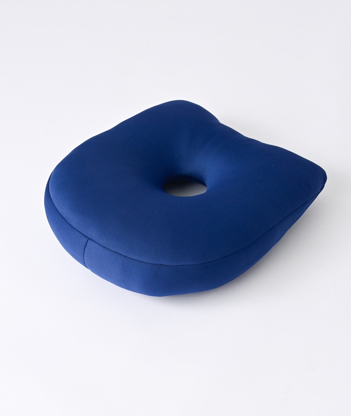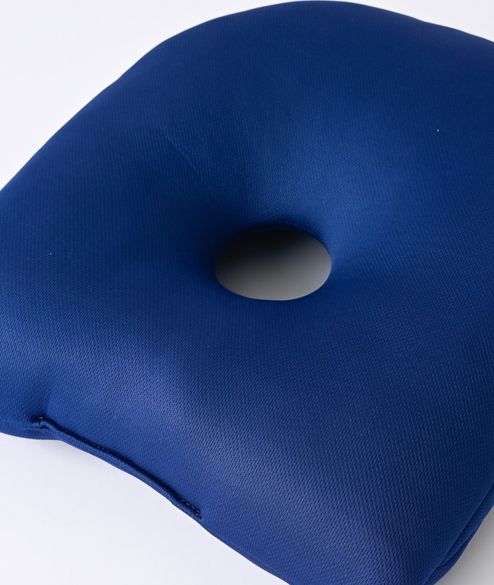 ・背筋をしっかりサポートして自然な姿勢へ導く整体院推奨クッション。こだわりの前傾角度で座るだけで背筋が伸び、下腹もスッキリ効果。中央の低反発チップ入り中材が骨盤を安定させ、お尻をしっかり支えます。