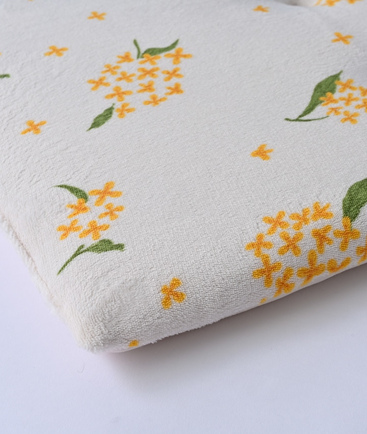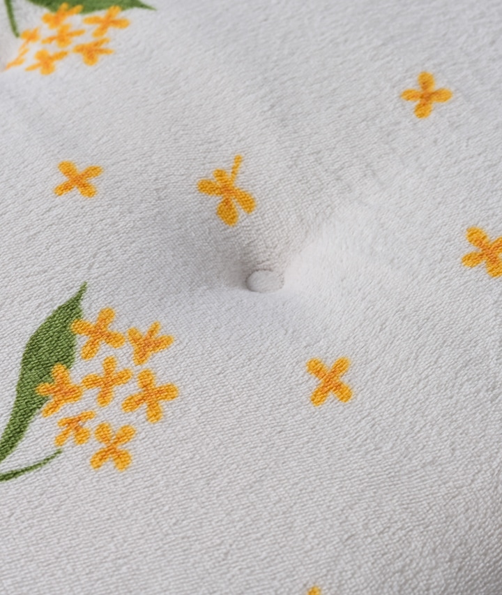 ・生活の木のカレンデュラオイルで保湿加工を施したフリーシートクッション。やさしい肌触りで、くつろぎ時間を癒しへと導きます。金木犀の可憐な柄が空間を華やかに彩り、日々のリラックスタイムを心地よく。洗濯機で丸洗いでき、清潔さも長続きします。