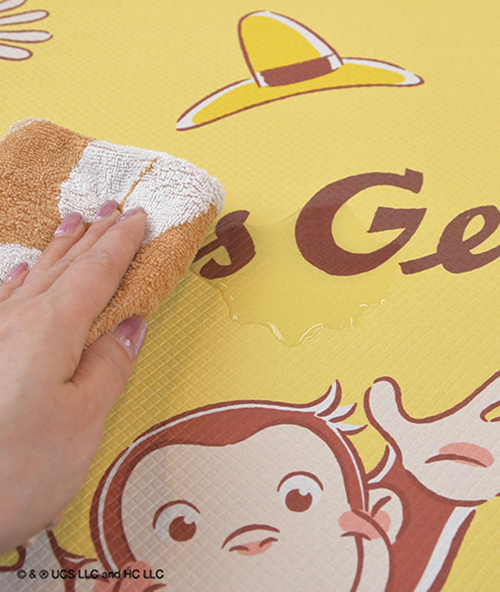 ・人気キャラクター『おさるのジョージ』のPVCキッチンマットです。汚れてもサッと拭き取りができます。