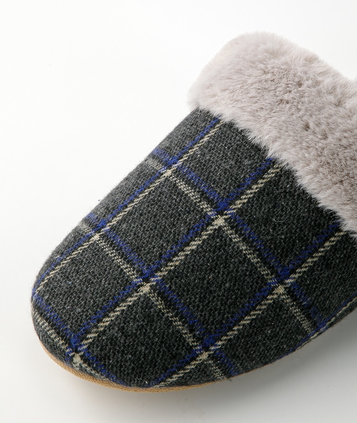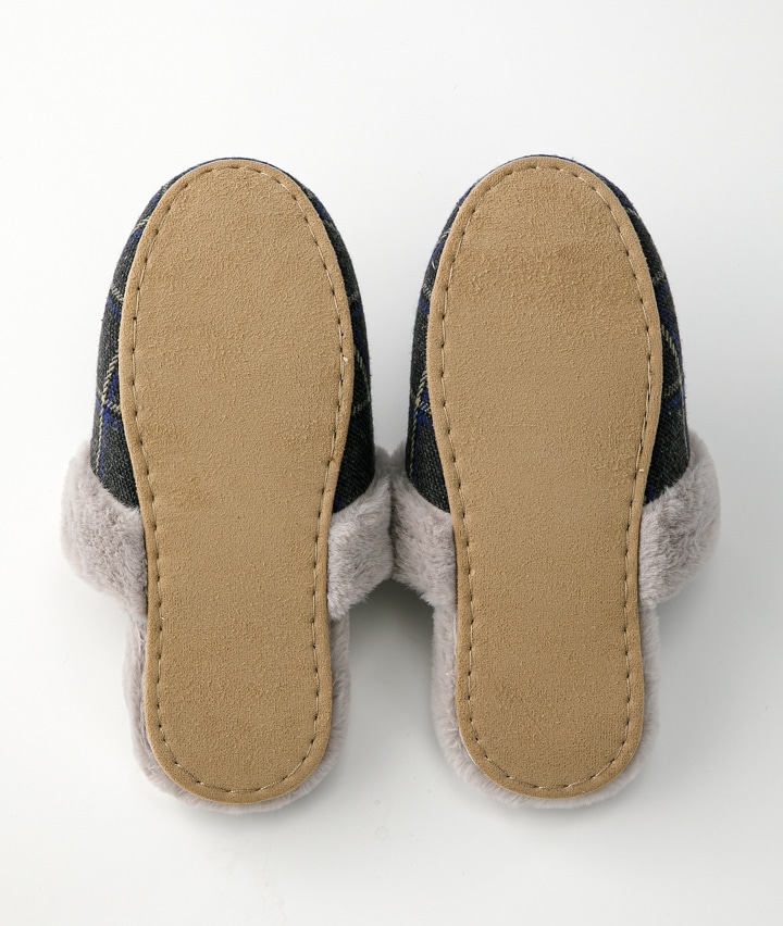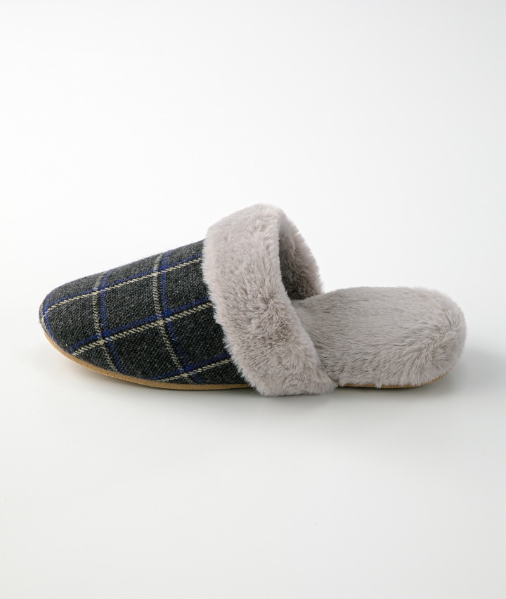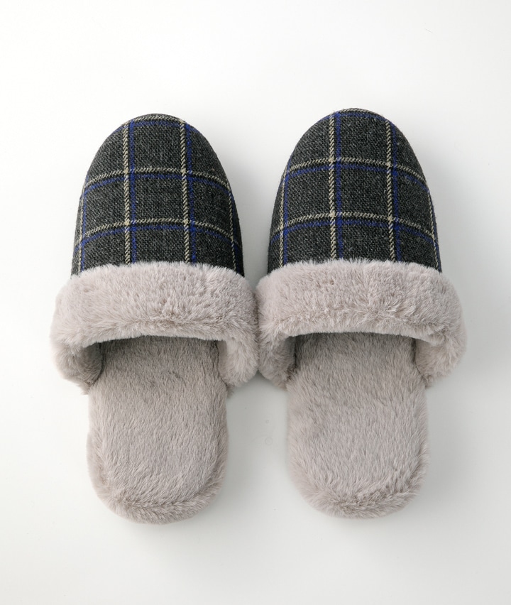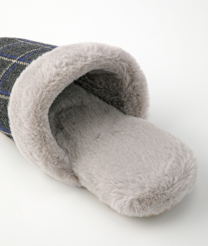(ぐいっとかかとアップ)チェック柄ボアスリッパ L