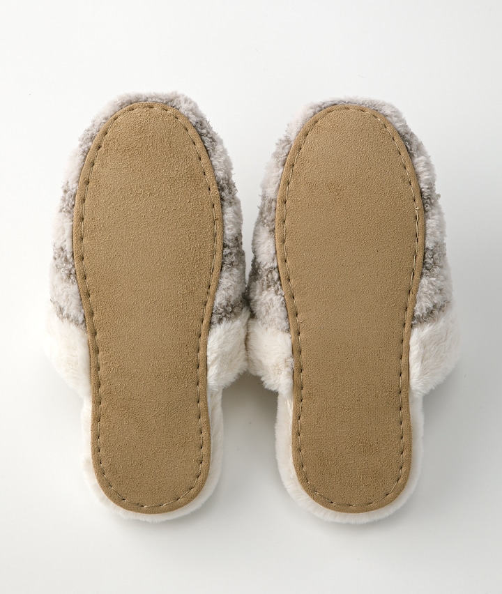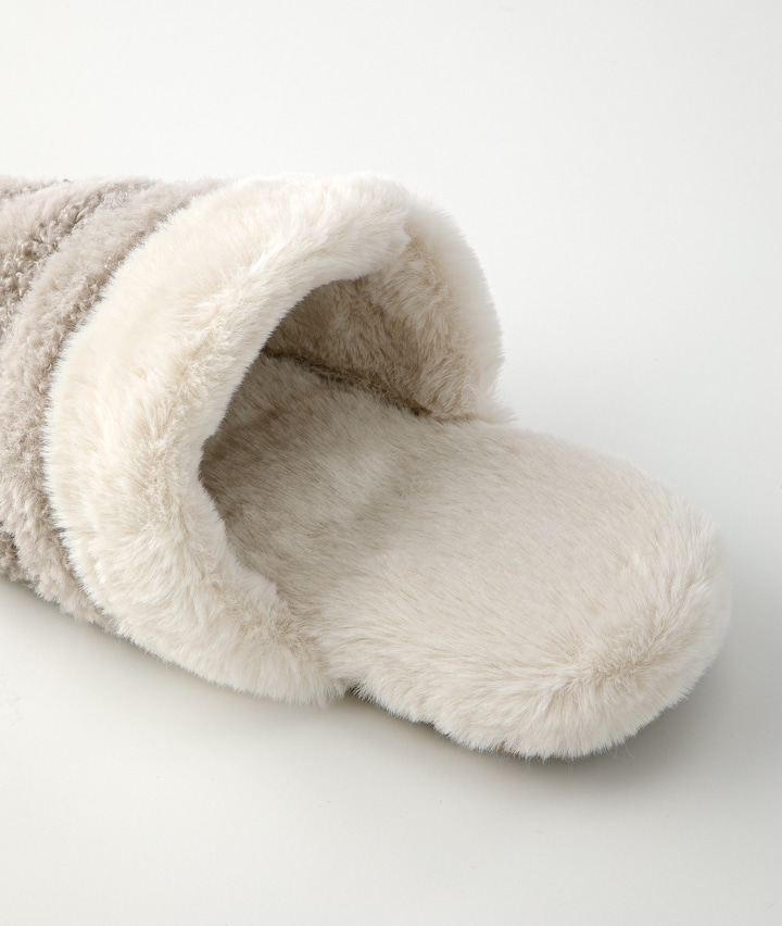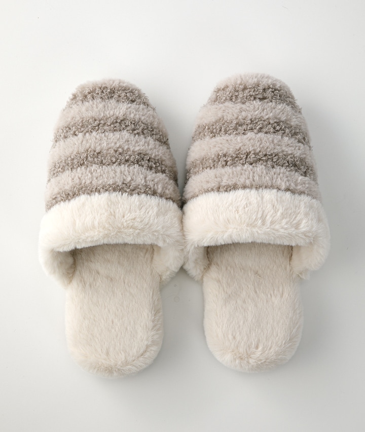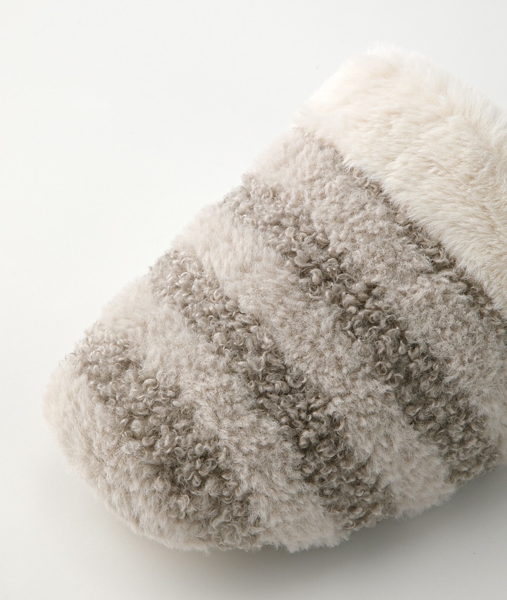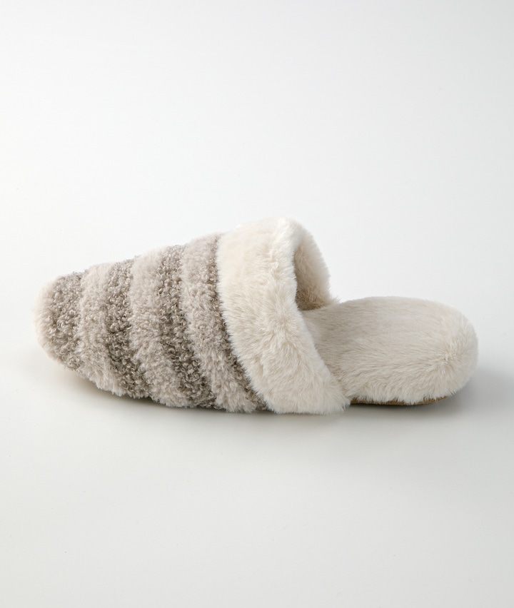 (ぐいっとかかとアップ)ボーダー柄ボアスリッパ L