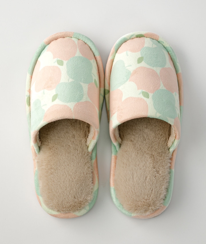 (Gingerのチカラ)(足なり&かかとしっかり)りんご柄スリッパ M