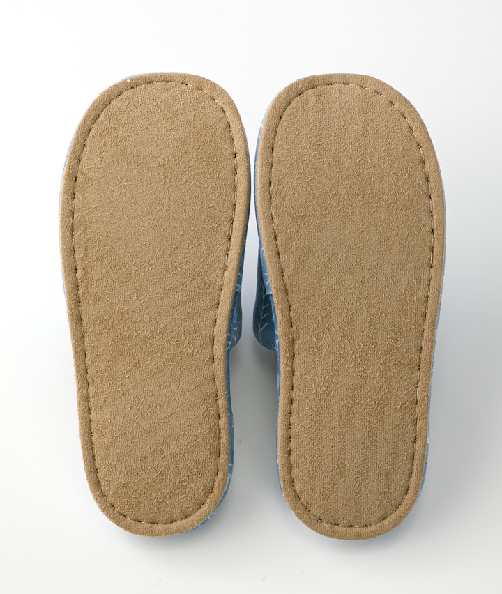 ・甲裏に発熱生地を使用した「Gingerのチカラ」スリッパです。①発熱②抗菌防臭③洗える④静音⑤温感生地使用の5つのこだわりのアイテムです。