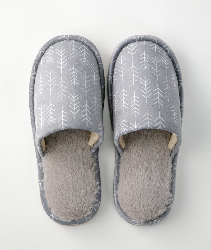 (Gingerのチカラ)(足なり&かかとしっかり)冬の森柄スリッパ L
