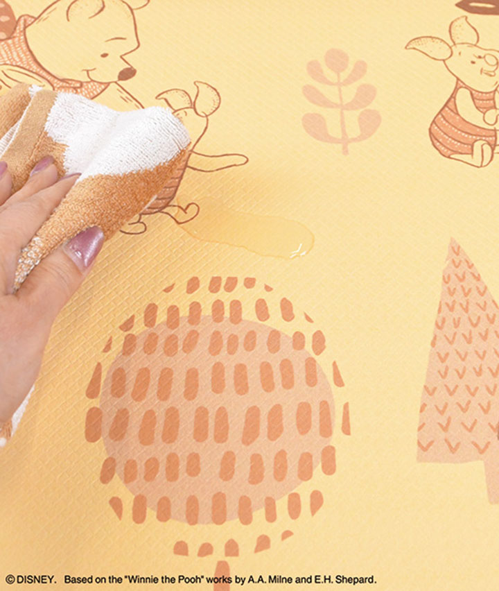 ・本品は洗えません。汚れた場合はぬるま湯や中性洗剤を含ませた布などで拭き取ってください。ご使用の際、床材(塩化ビニル・フローリング等)の材質によっては、床がべたついたり、色移りする場合がありますので、以下の点にご注意ください。長時間同じ場所でのご使用はせずに、定期的に使用場所をずらしたり、床面を拭いてご使用ください。特に、新築の床材やワックスがけ直後のご使用はご注意ください。濡れた時、摩擦移染することがありますので、乾いたタオル等で拭き取ってください。マットの裏に水分がある状態で長時間放置しますと、カビ発生の原因になります。ご使用後は早めに日陰干しをしてください。滑って転倒の恐れがありますので、勢いよくマットに飛び乗らないでください。