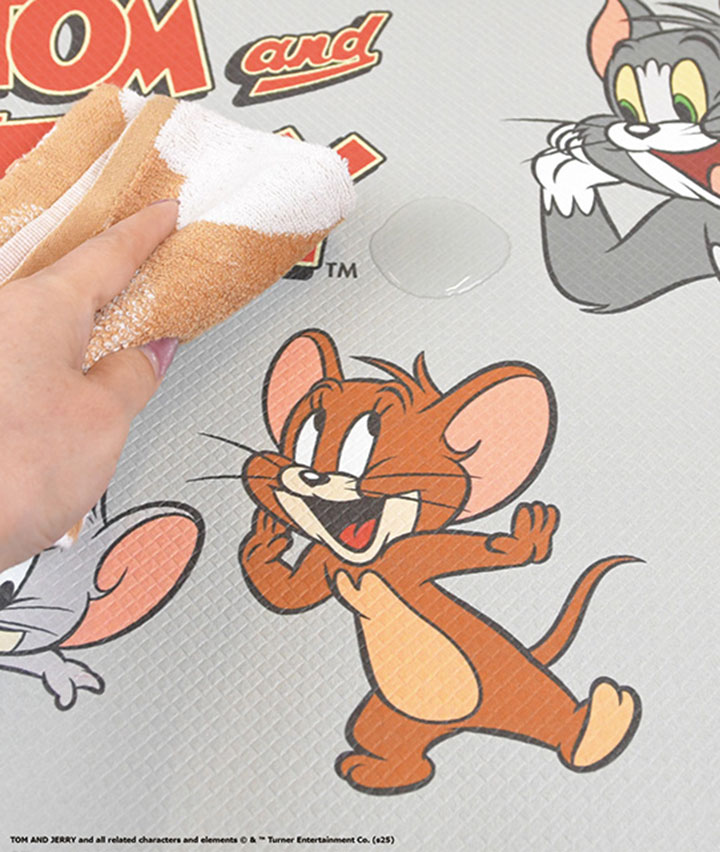 ・本品は洗えません。汚れた場合はぬるま湯や中性洗剤を含ませた布などで拭き取ってください。ご使用の際、床材(塩化ビニル・フローリング等)の材質によっては、床がべたついたり、色移りする場合がありますので、以下の点にご注意ください。長時間同じ場所でのご使用はせずに、定期的に使用場所をずらしたり、床面を拭いてご使用ください。特に、新築の床材やワックスがけ直後のご使用はご注意ください。濡れた時、摩擦移染することがありますので、乾いたタオル等で拭き取ってください。マットの裏に水分がある状態で長時間放置しますと、カビ発生の原因になります。ご使用後は早めに日陰干しをしてください。滑って転倒の恐れがありますので、勢いよくマットに飛び乗らないでください。