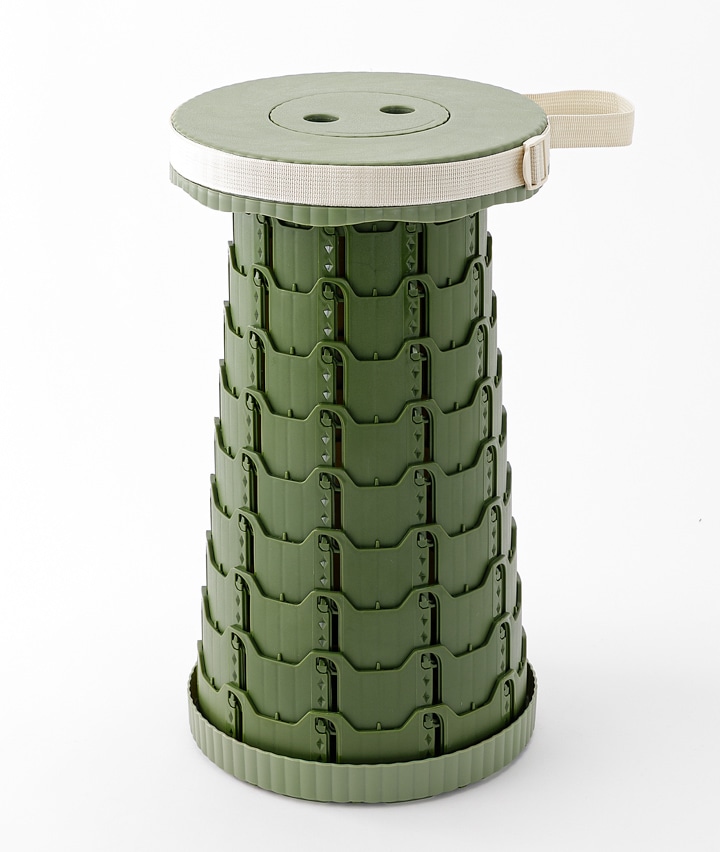 ・アコーディオン型のスツールです。パーティーなどの人の集まりやキャンプやアウトドアにも使える持ち運び便利なアイテム。直径約25cm 高さ約7~44.5cm 重さ920g(本体) 耐荷重200kg 10段階調整可能