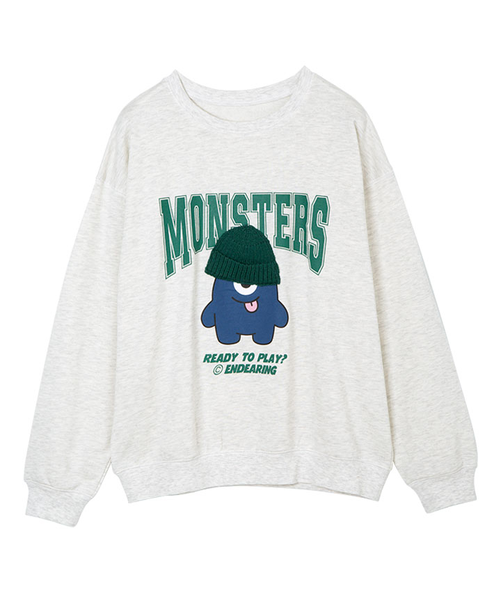 ・ニット帽を被った、モンスターグラッフィックがポイントのプルオーバー