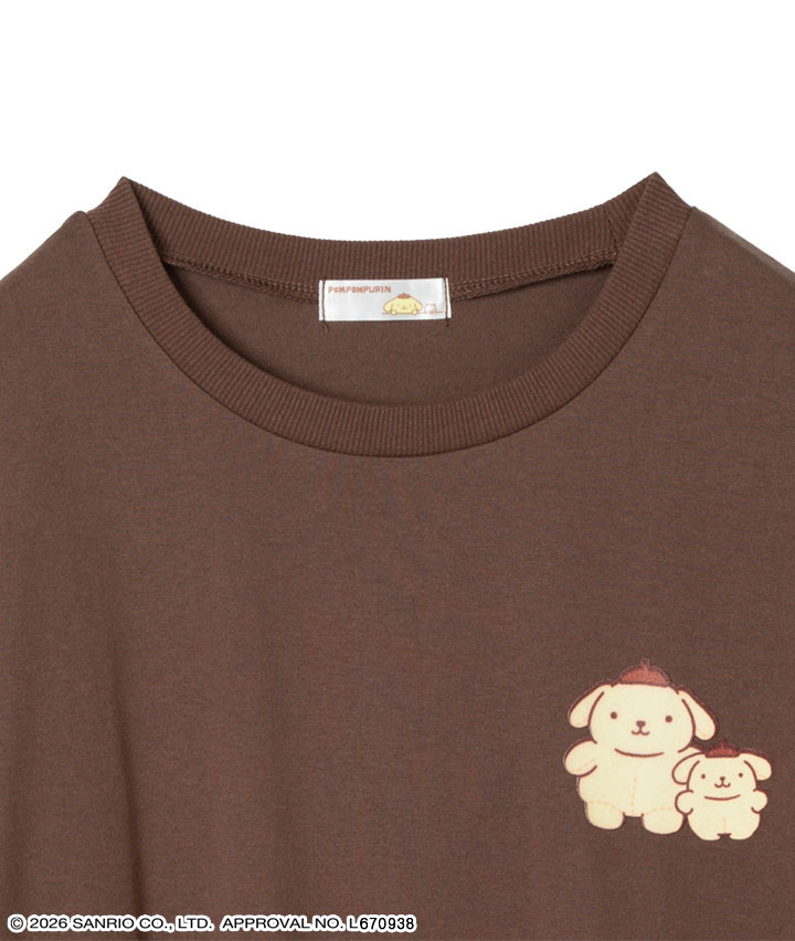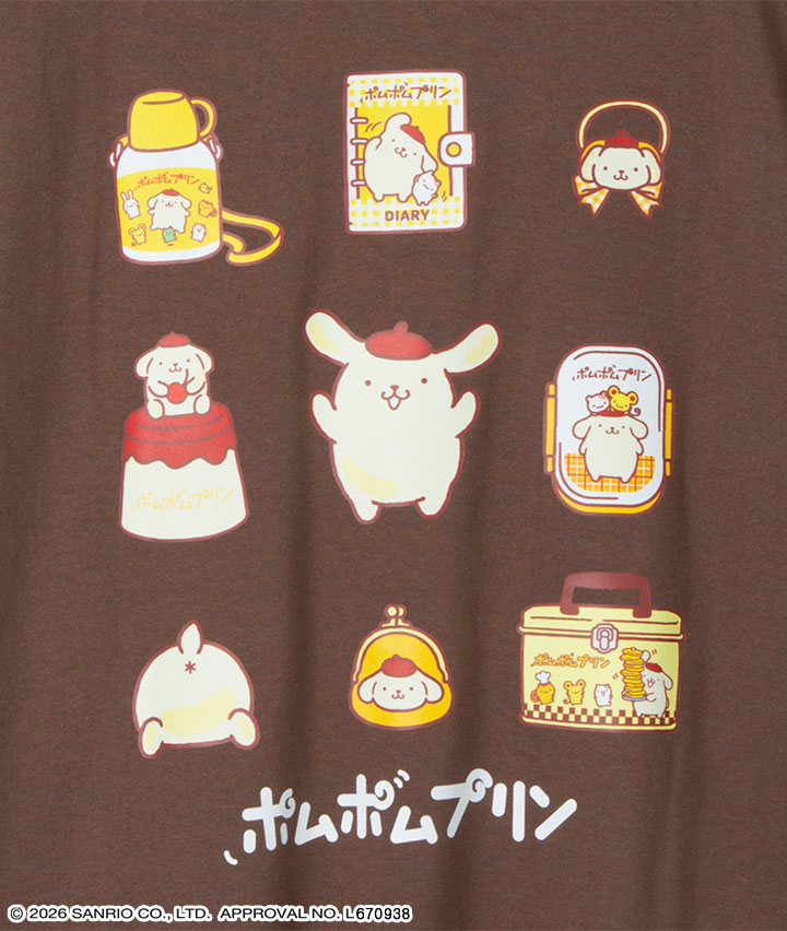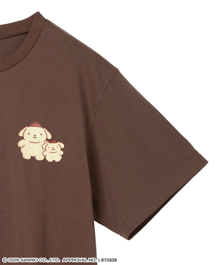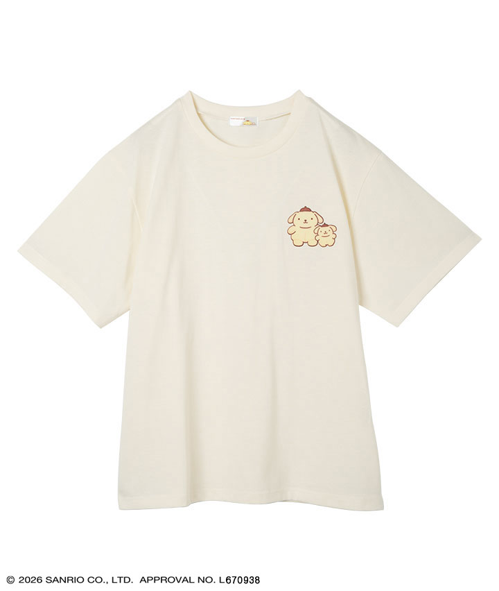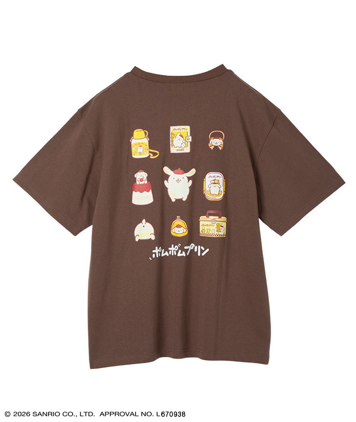 ・ポムポムプリンの9版バックプリントTシャツです。左胸のフロッキープリントがポイントです。