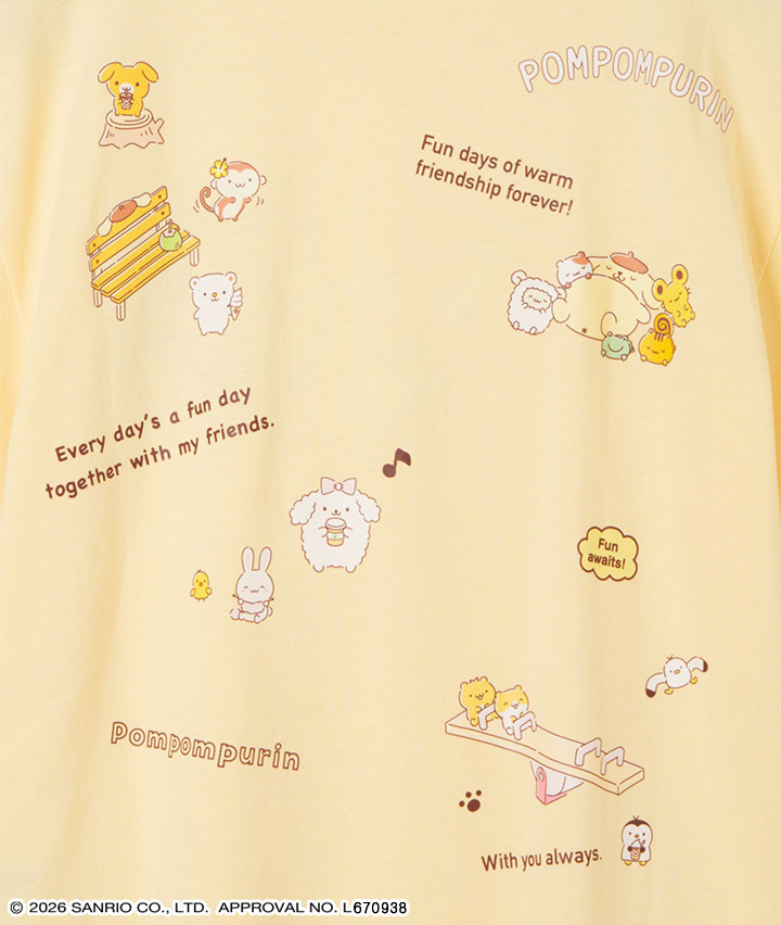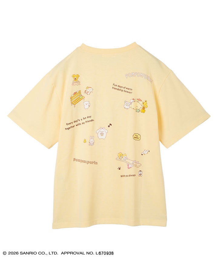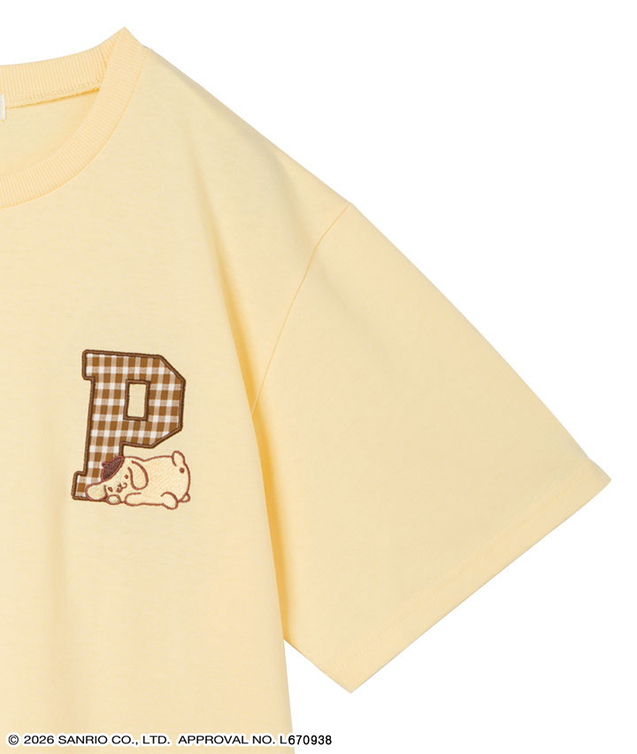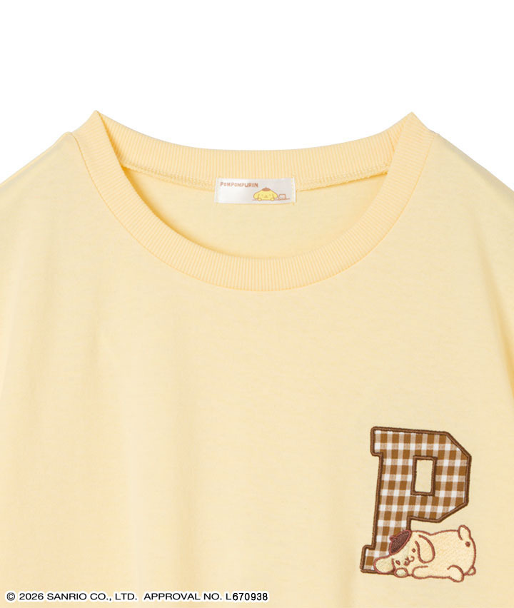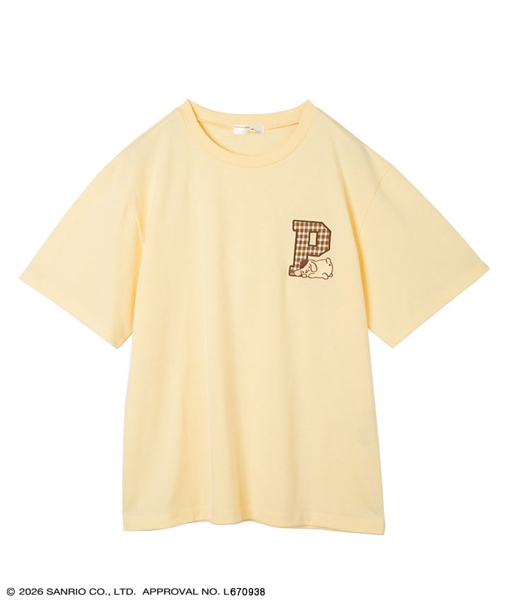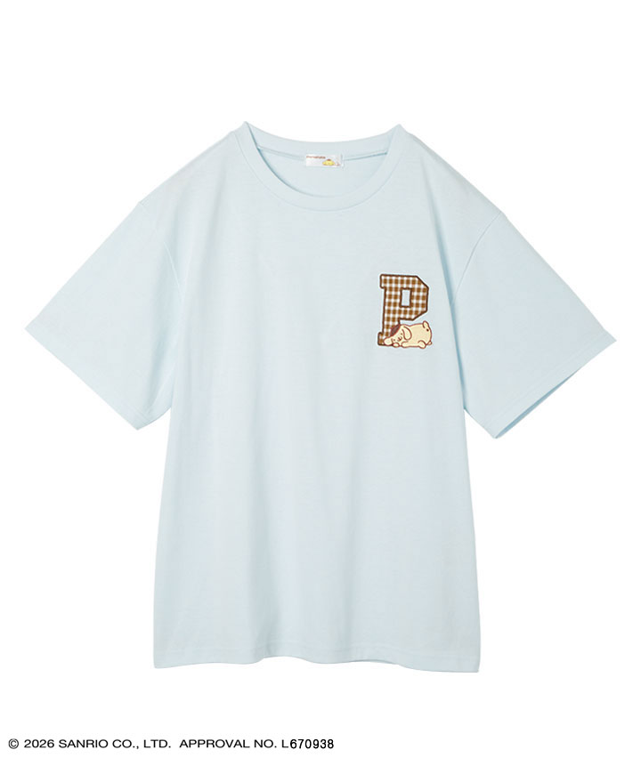 ・左胸のワンポイント貼り付けロゴが可愛いポムポムプリンのTシャツです。