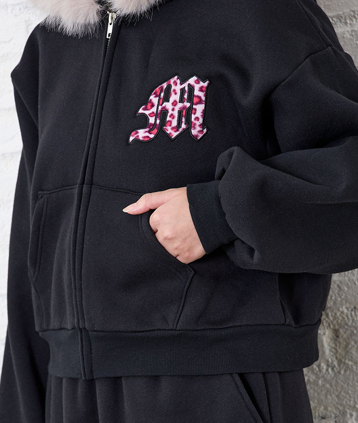 ヒョウ柄貼付フードファーパーカ