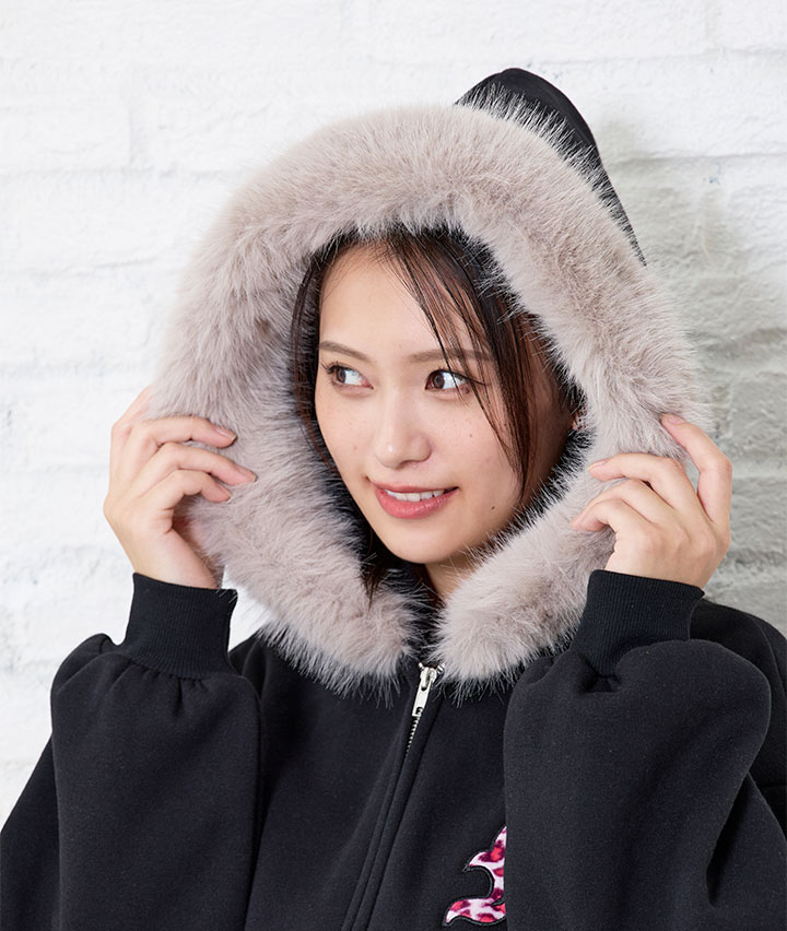 ・本体:ポリエステル65%綿35% リブ部分:ポリエステル62%綿33%ポリウレタン5% ファー部分:パイルポリエステル100% 基布:ポリエステル100% 別布部分:ポリエステル100%