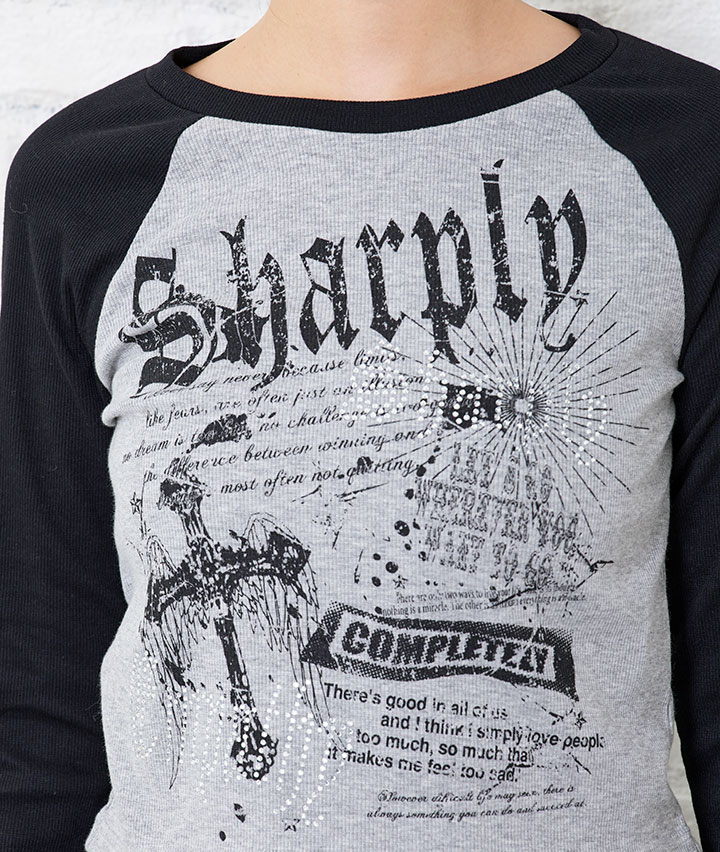 ・ラインストーンが付いているTシャツです。
