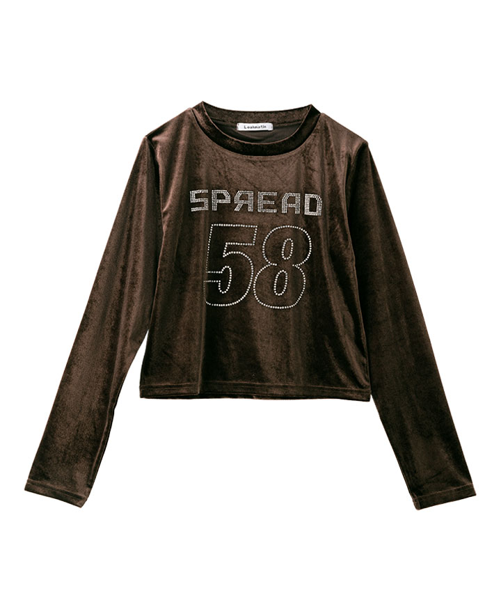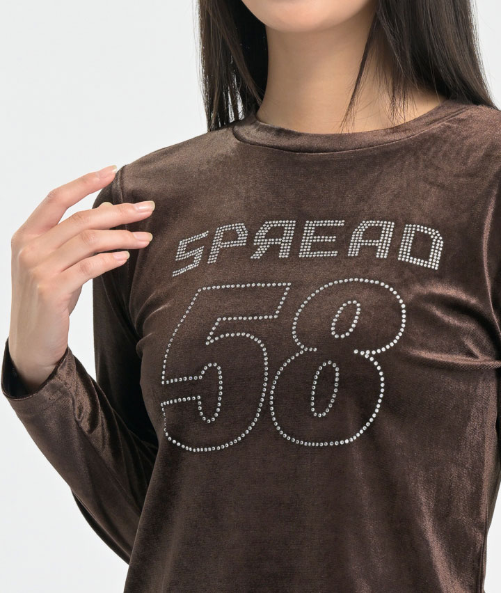 ・トレンドであるナンバリングのラインストーンロゴのベロアプルオーバーです。